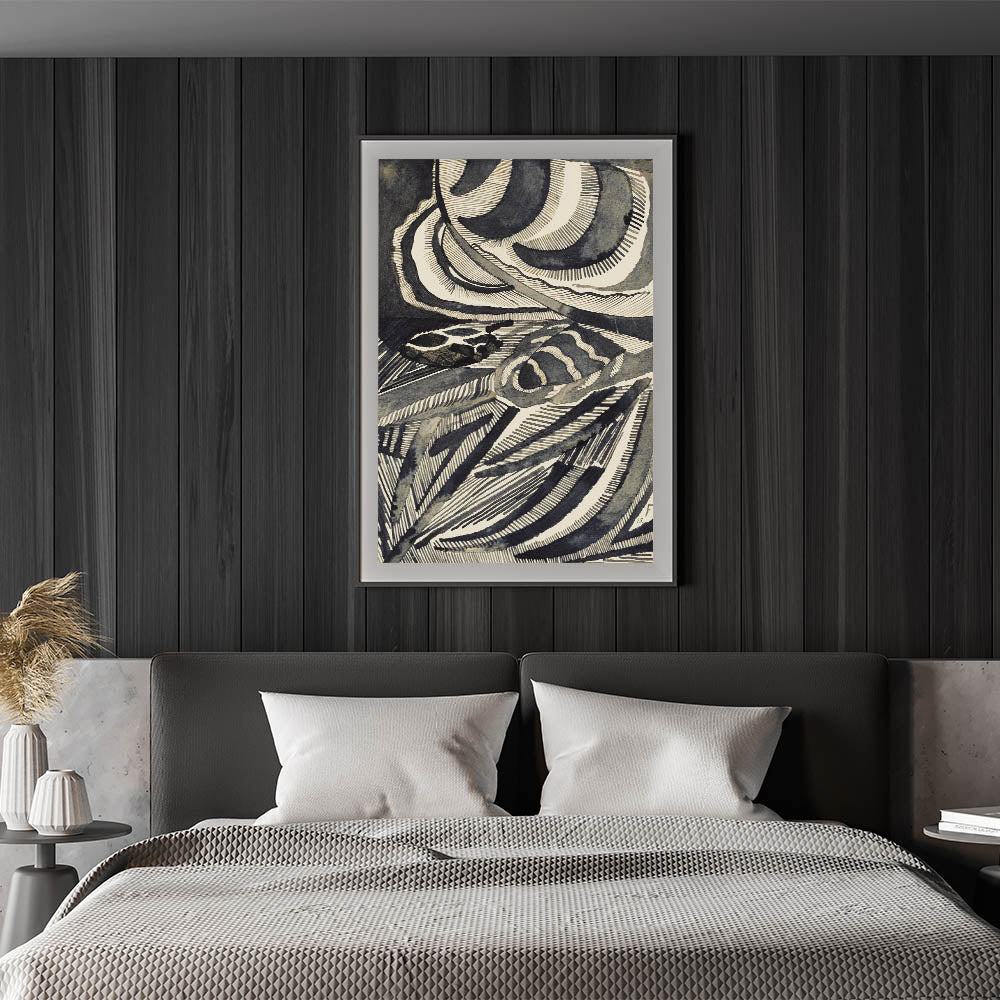 Add a bold and abstract touch to your decor with this striking Gothic wall art, featuring intricate curved patterns and a snake hidden within the design. This vintage Gothic print offers a unique blend of abstract art and symbolic representation, perfect for those who appreciate the depth of Gothic-inspired design. The black, white, and grey tones make this medieval Gothic canvas a versatile piece that enhances any dark decor style.