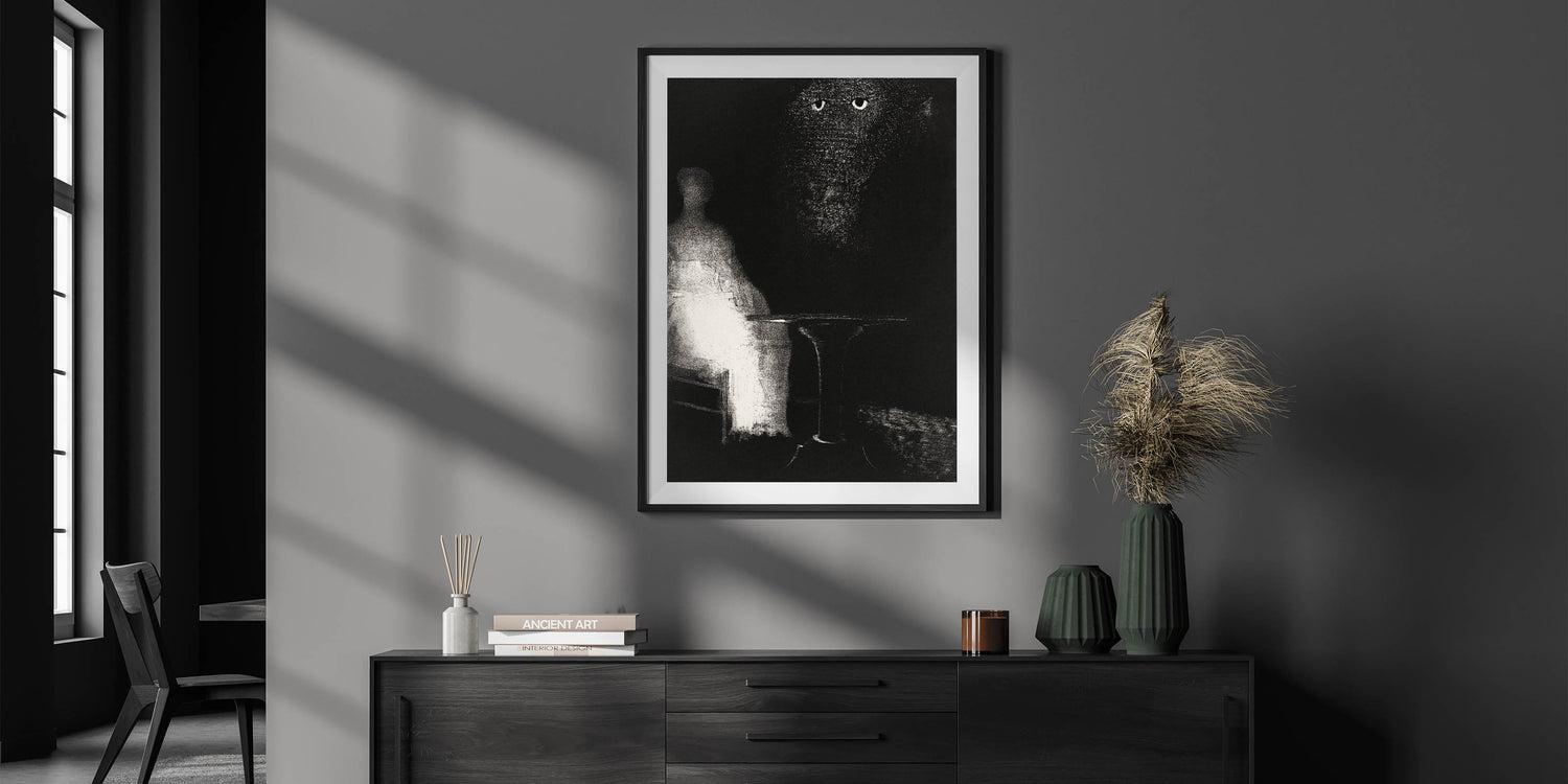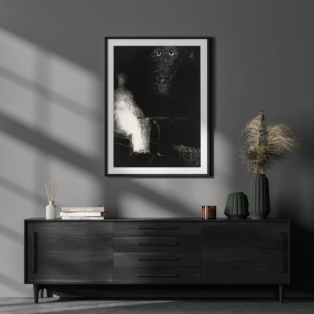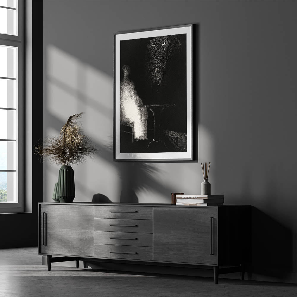 Dive into the shadows with this evocative Gothic Wall Art piece, capturing the essence of dark, mysterious spaces. The haunting imagery of a figure and shadowy presence creates an atmosphere of eerie silence and intrigue. Perfect for those who admire dark decor styles and enjoy adding elements of suspense to their interiors, this Gothic-inspired design offers a timeless appeal with its stark contrast and minimal yet impactful detail.