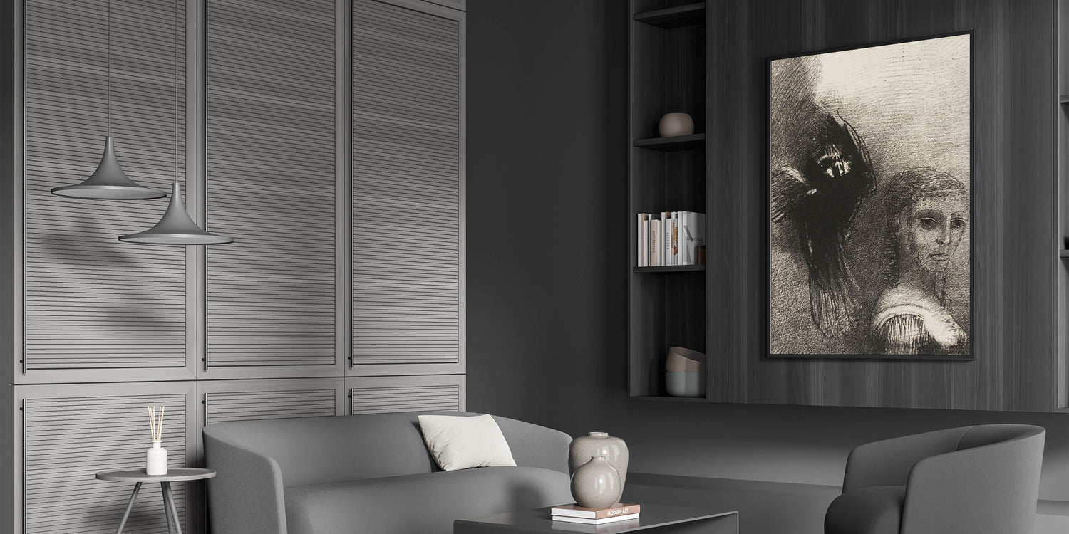 - The dark, shadowy themes of the artwork complement a range of Gothic wall decor ideas.
