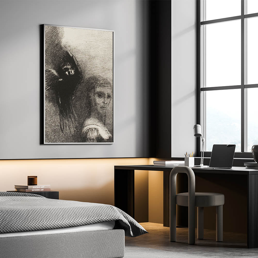 Delve into the enigmatic world of Gothic wall art with this striking vintage Gothic print featuring a shadowy figure and a haunting raven. The detailed shading and surreal imagery evoke mysterious Gothic themes, perfect for those who seek dark decor style to elevate their space. This piece draws upon the classic association between ravens and mystery, making it an ideal addition to your Gothic-inspired design collection.