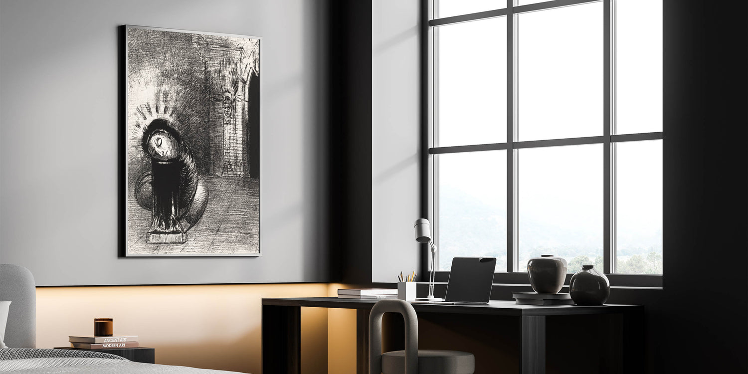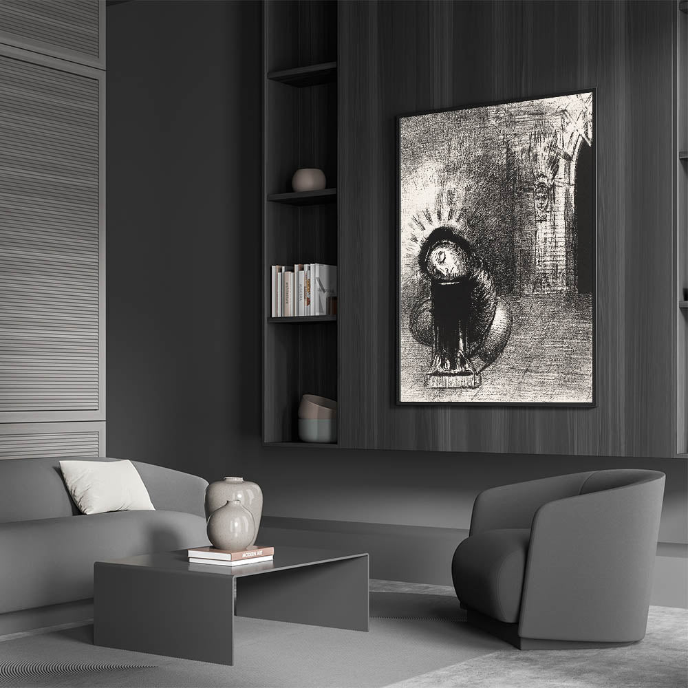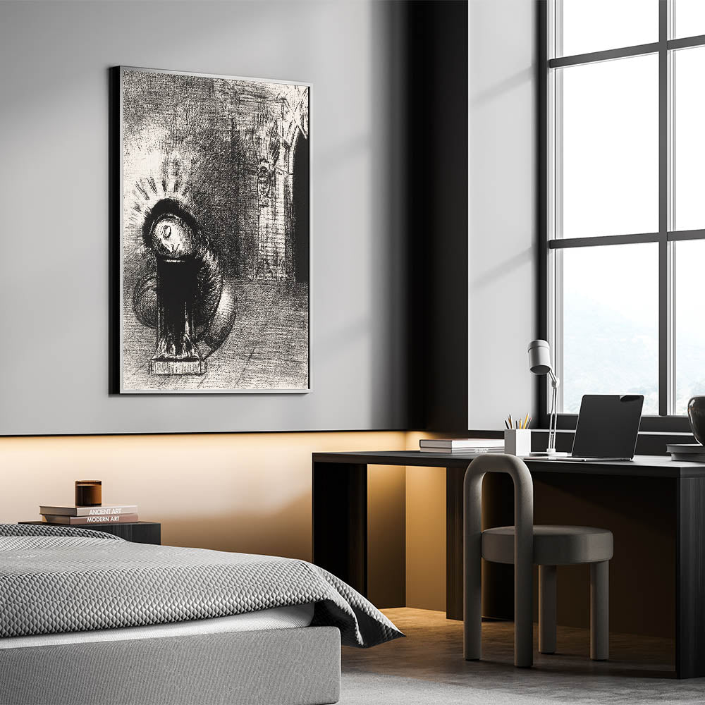 - A timeless Gothic artwork that blends dark tones with intricate details, bringing a mystical presence to your space.