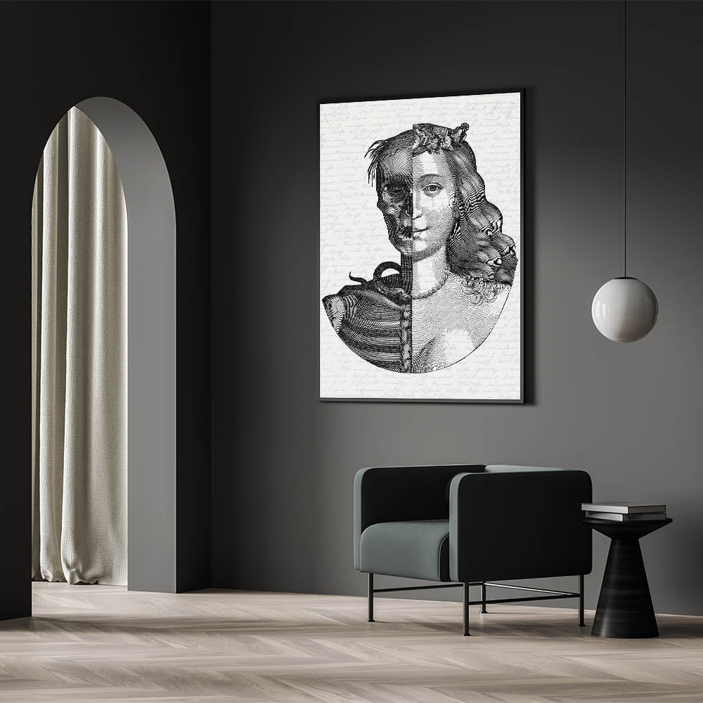 Gothic Wall Art | Half Skull, Half Woman Medieval Gothic Canvas Print
