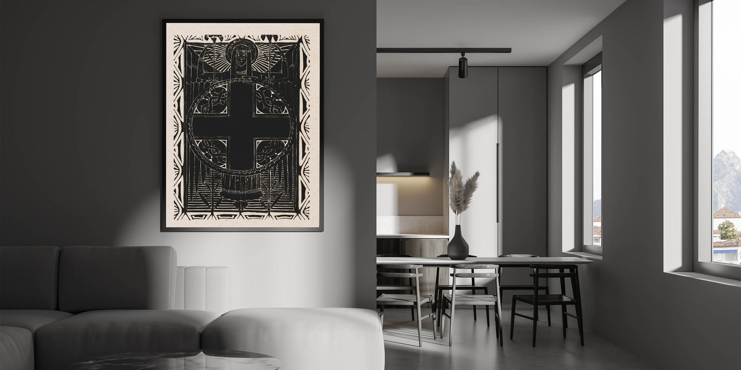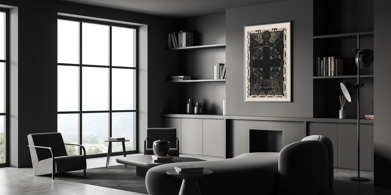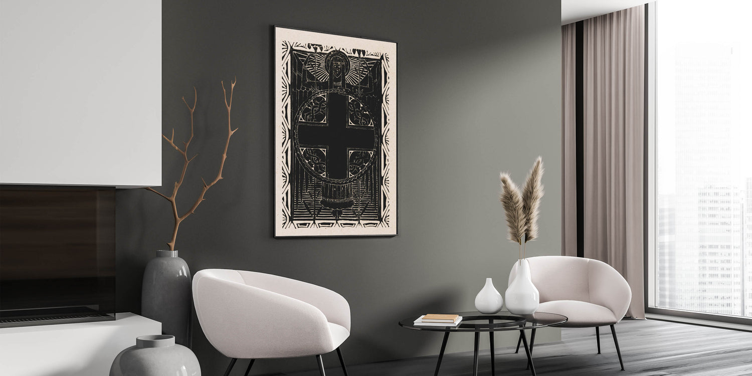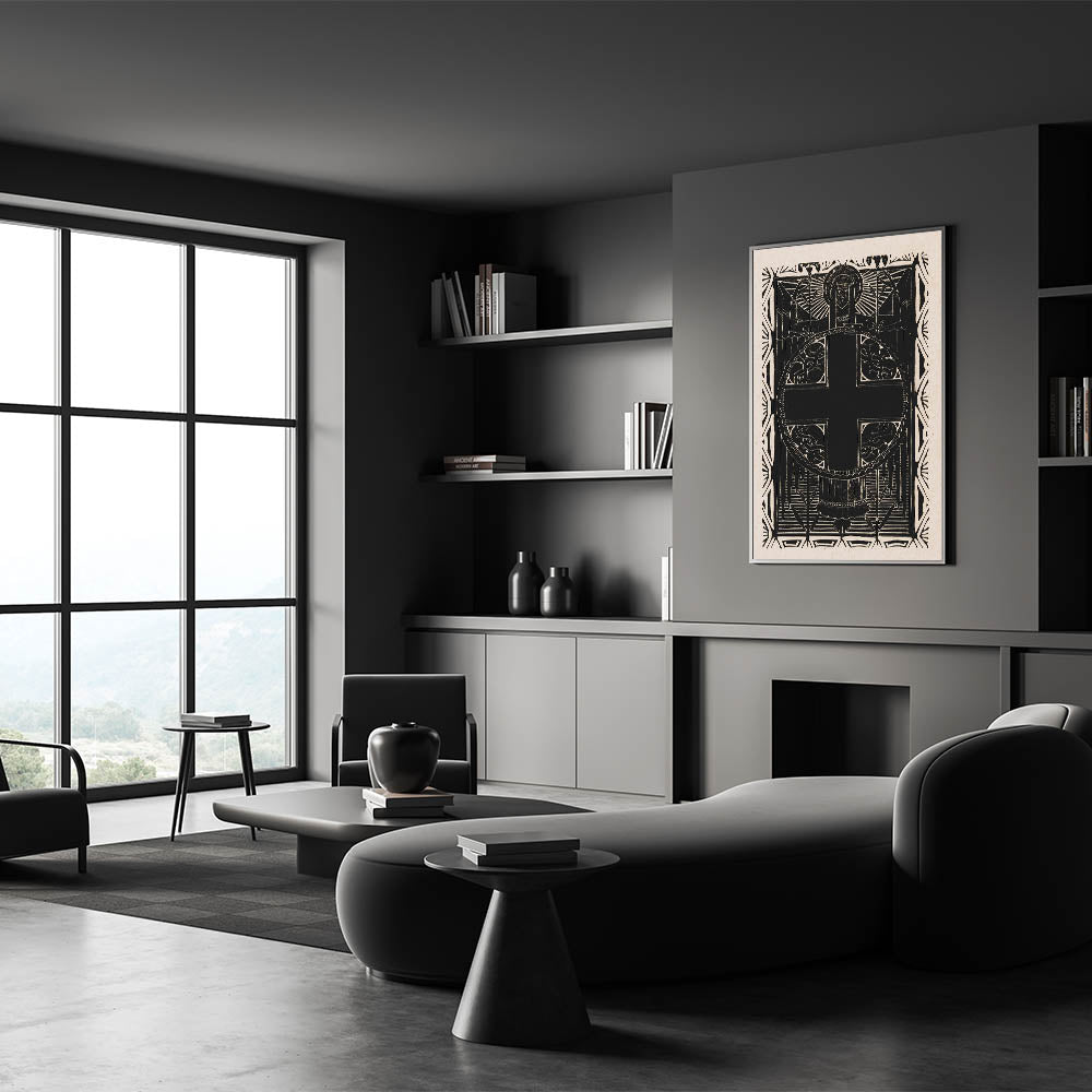 This Gothic print adds a sense of depth and intrigue to any room, creating a dramatic focal point with its bold contrast and spiritual symbolism. Whether used as a standalone piece or part of a larger collection, this elegant Gothic print is sure to transform your space with its powerful presence.