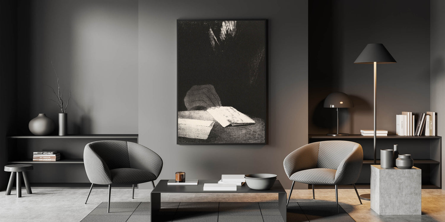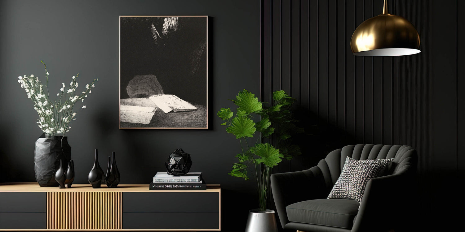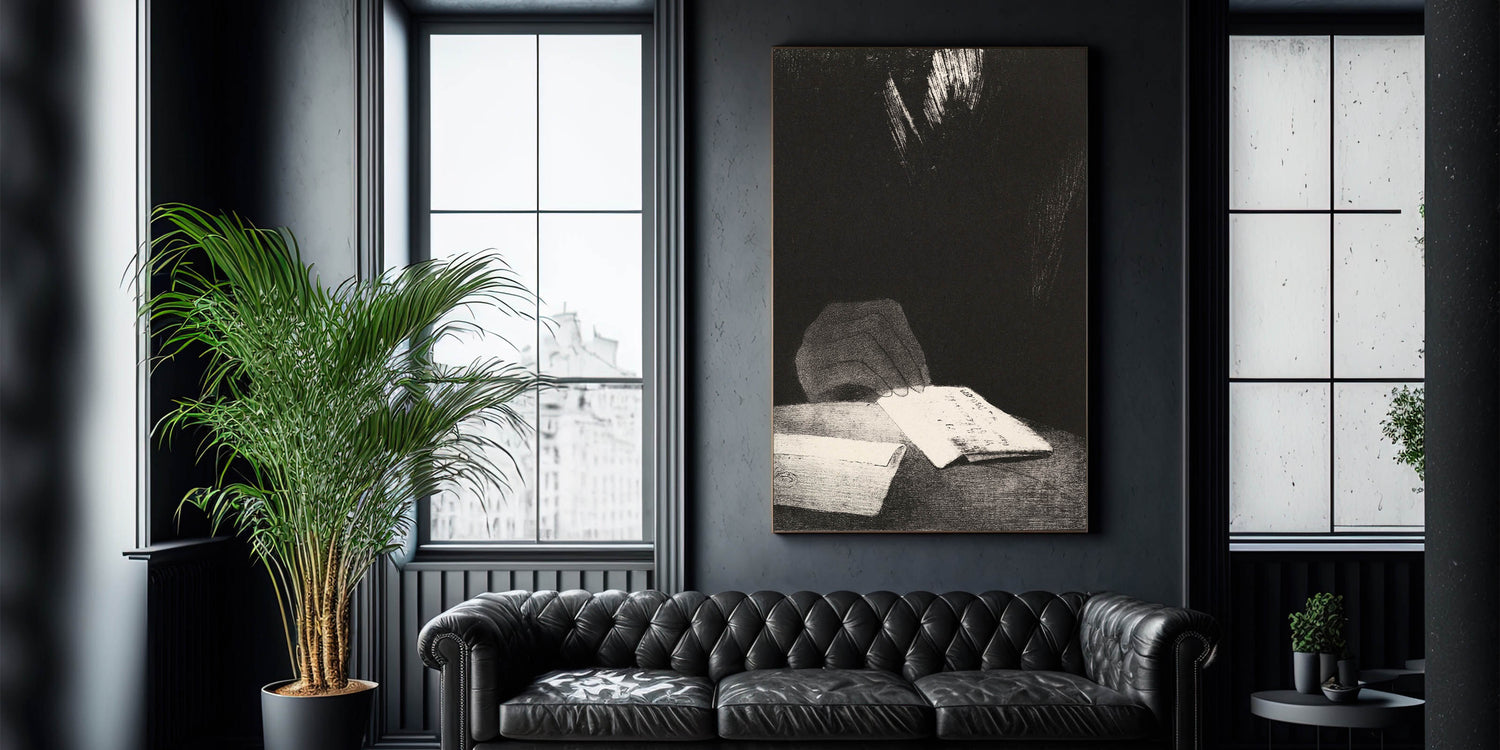 Infuse your space with intrigue and mystery through this Gothic-inspired artwork featuring a hand holding a letter in an enigmatic setting. The dark, minimalistic composition draws attention to the subtle yet evocative details, making it a perfect addition to any Gothic or dark decor style. This timeless Gothic artwork will captivate any observer and seamlessly blend into various decor themes.
