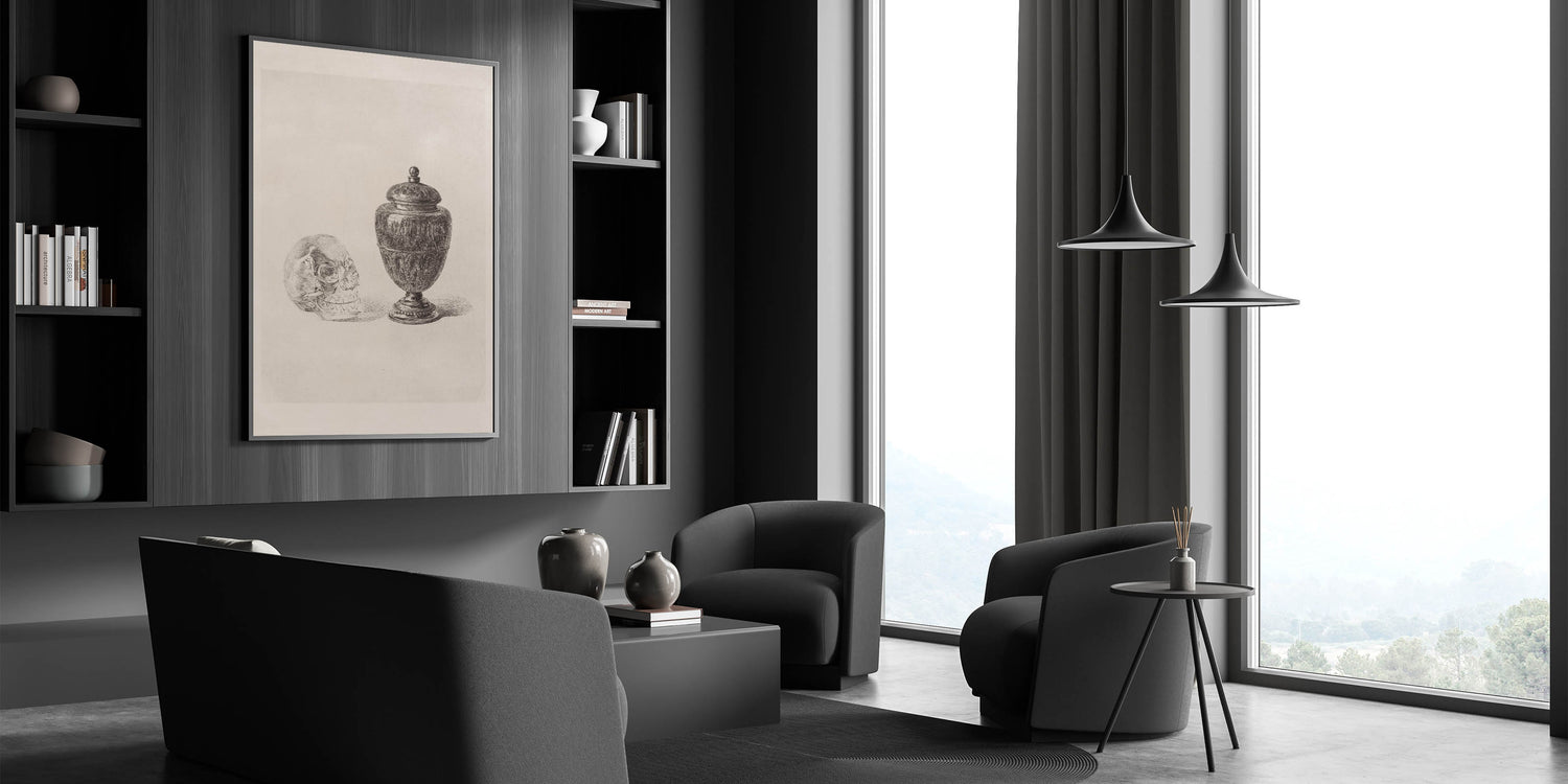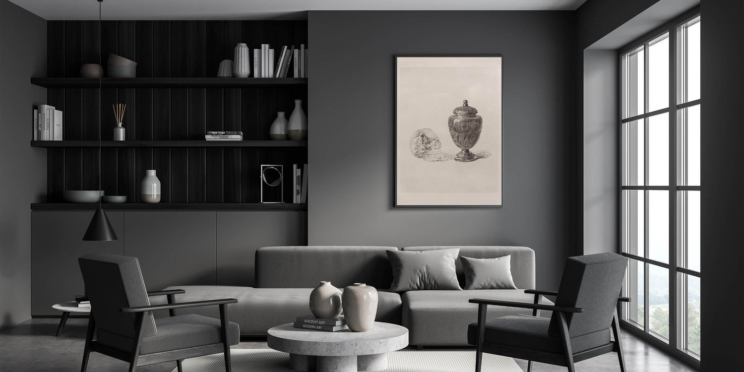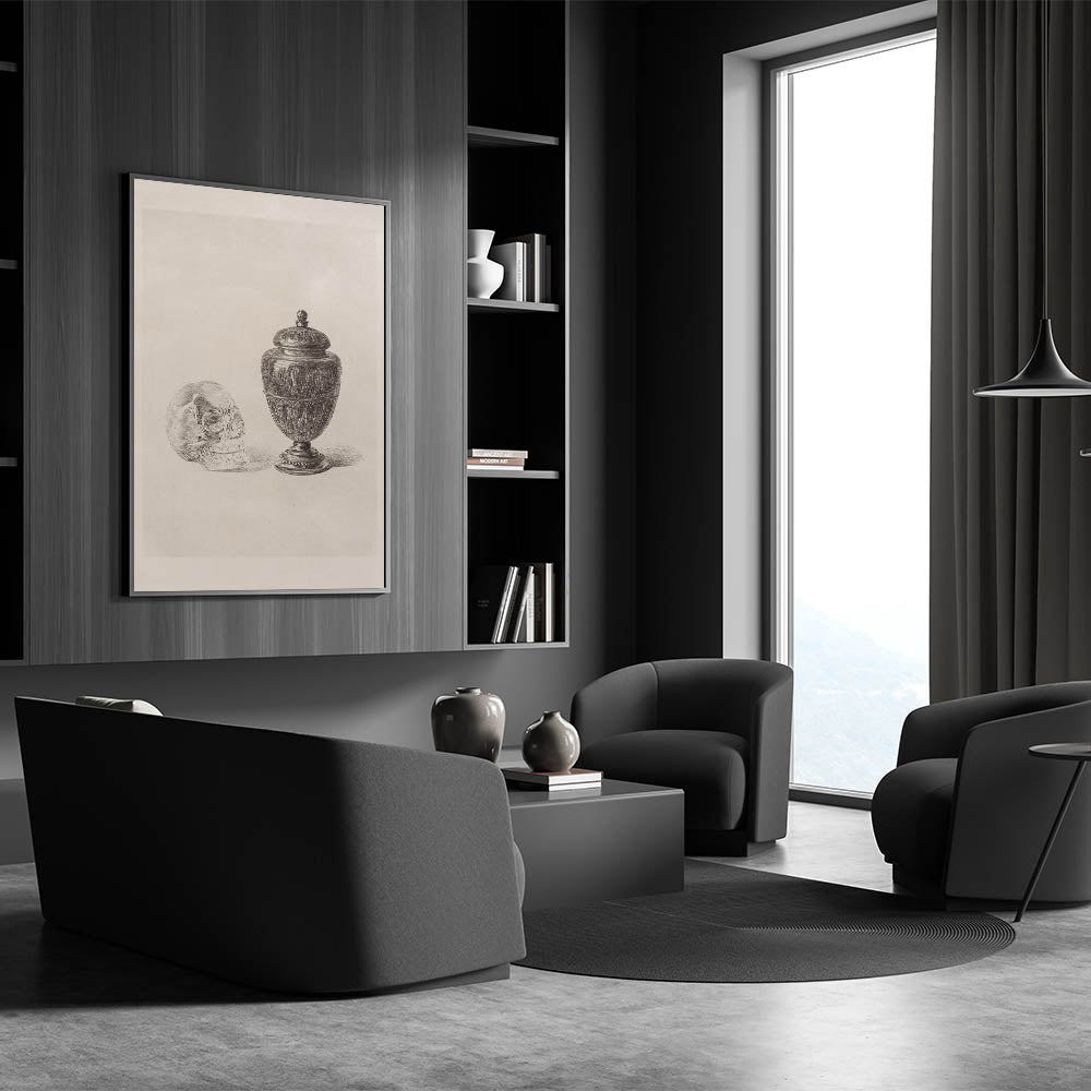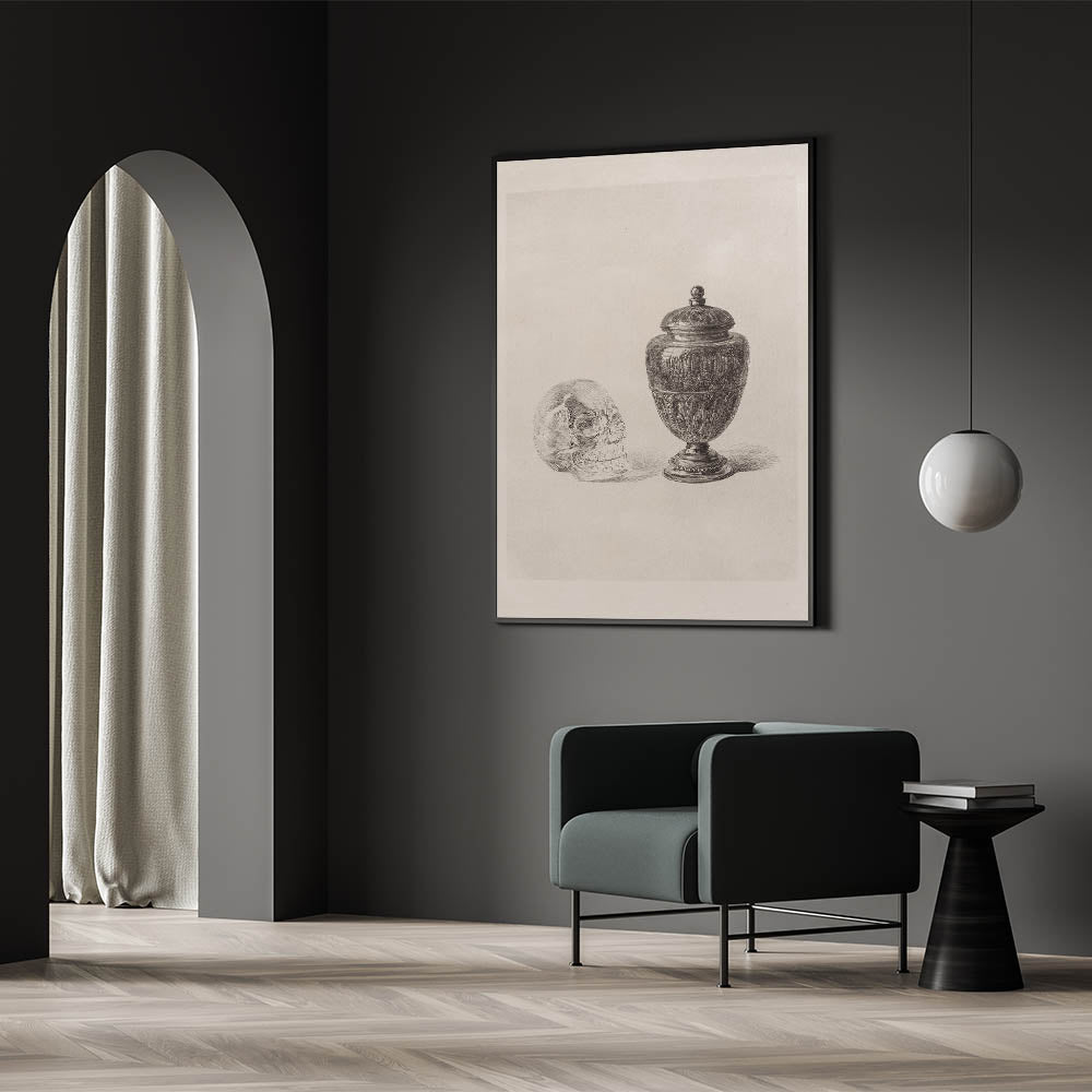 Gothic Wall Art | Skull and Urn Illustration | Dark Decor Style