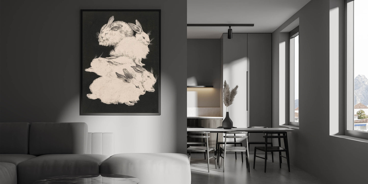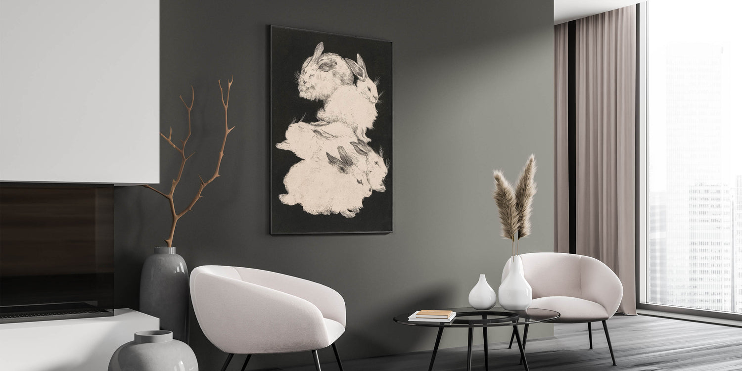 Gothic Wall Art | Surreal Rabbit Illustration | Dark Decor Style