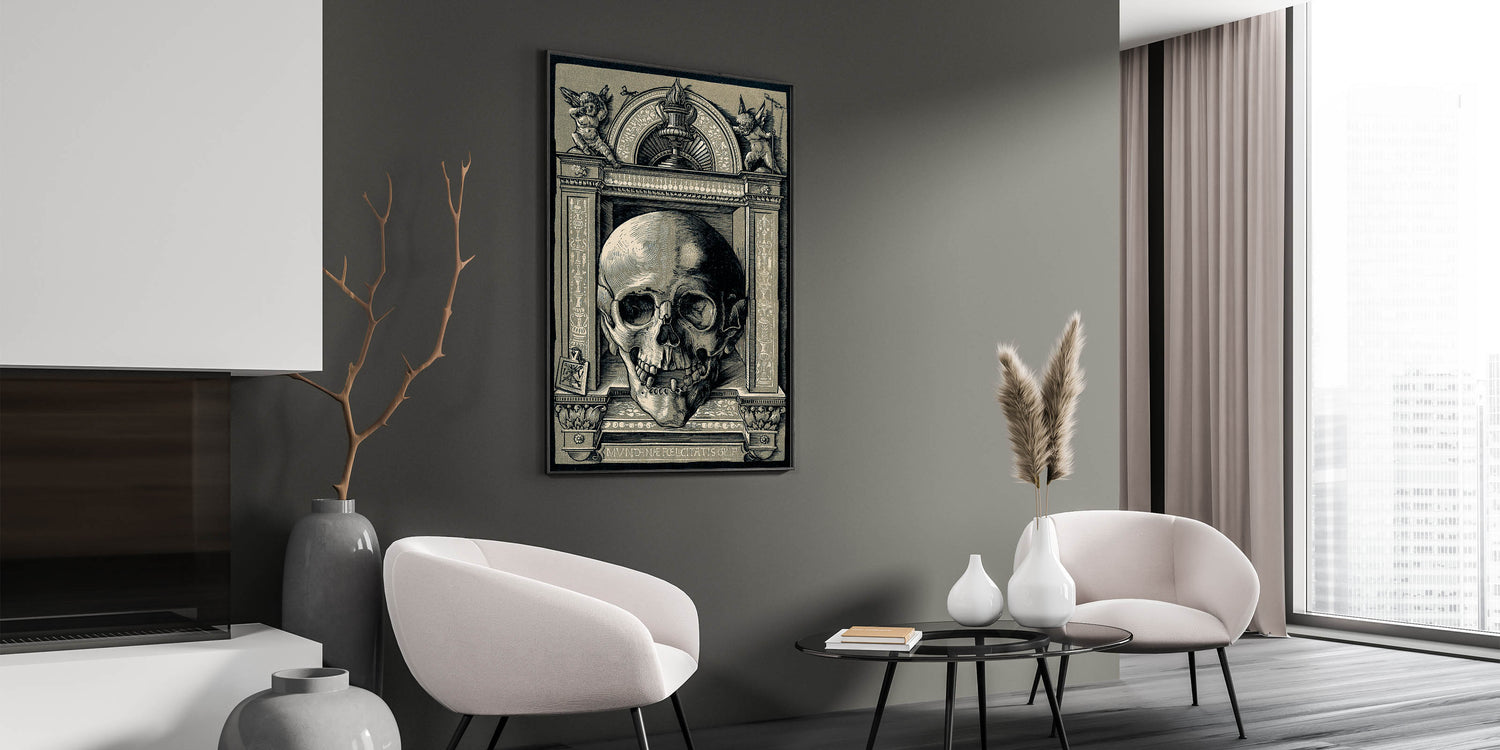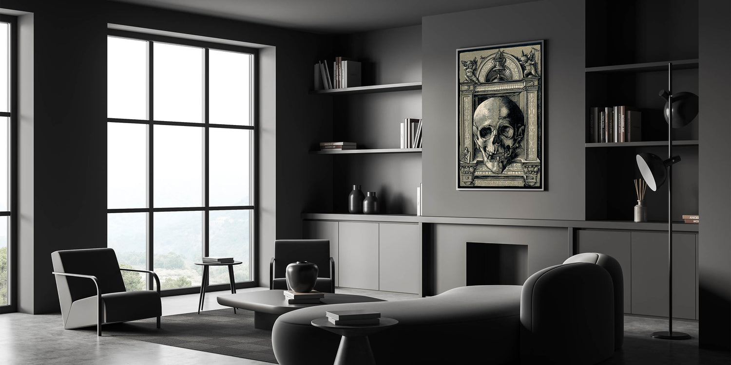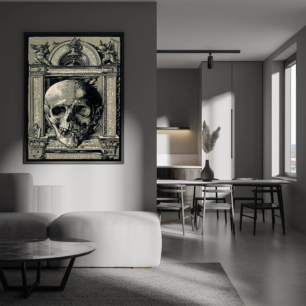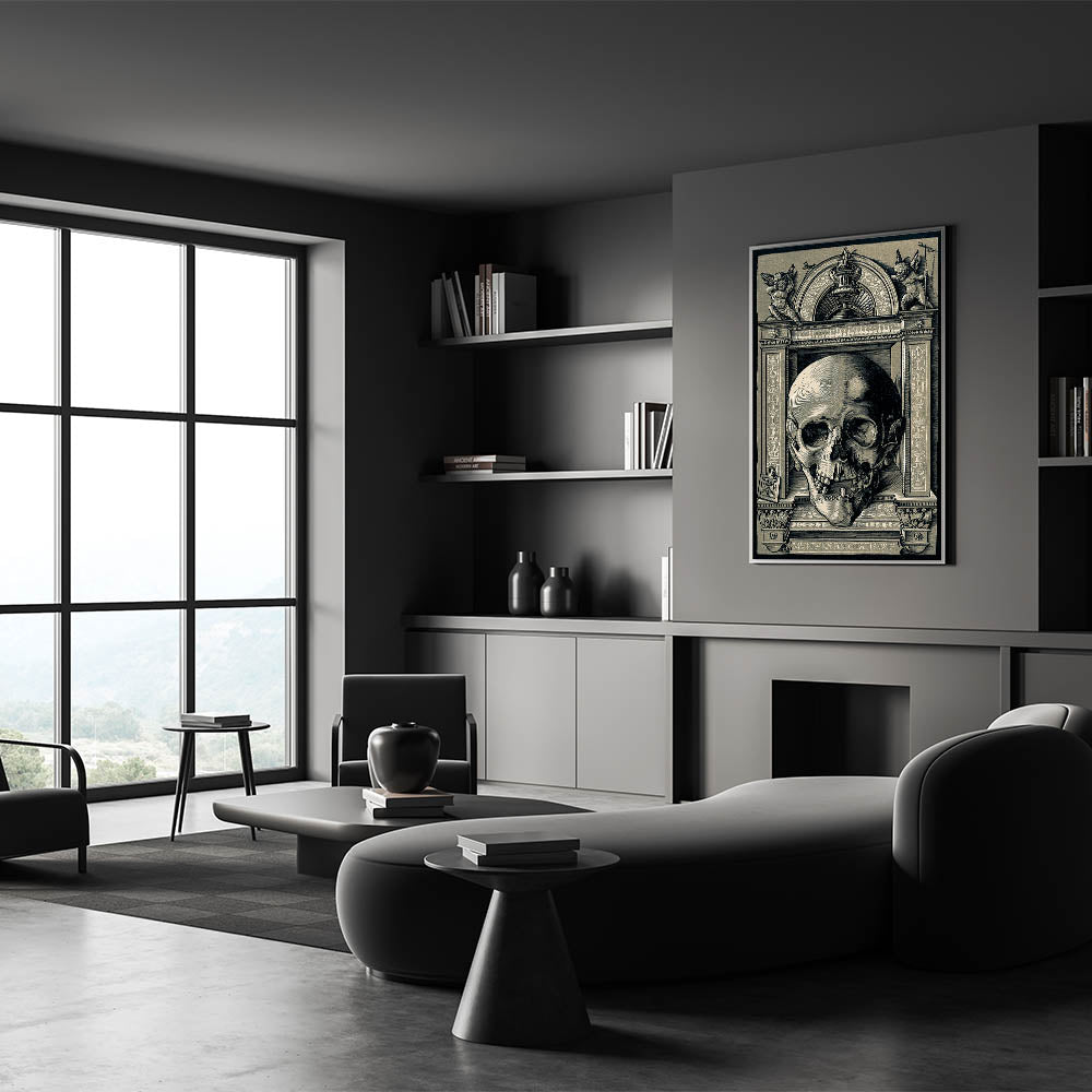 - Mysterious Gothic Themes: An ornate skull illustration that captures the essence of classic Gothic decor and medieval aesthetics.