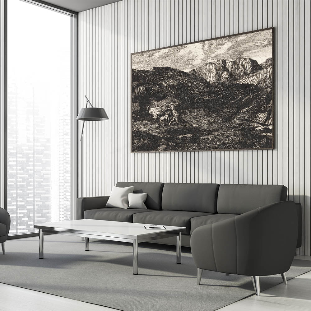 - Captures a knight’s journey through a mountainous terrain, perfect for adding depth and a sense of adventure to any Gothic-themed room.