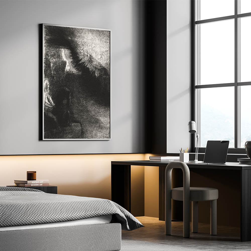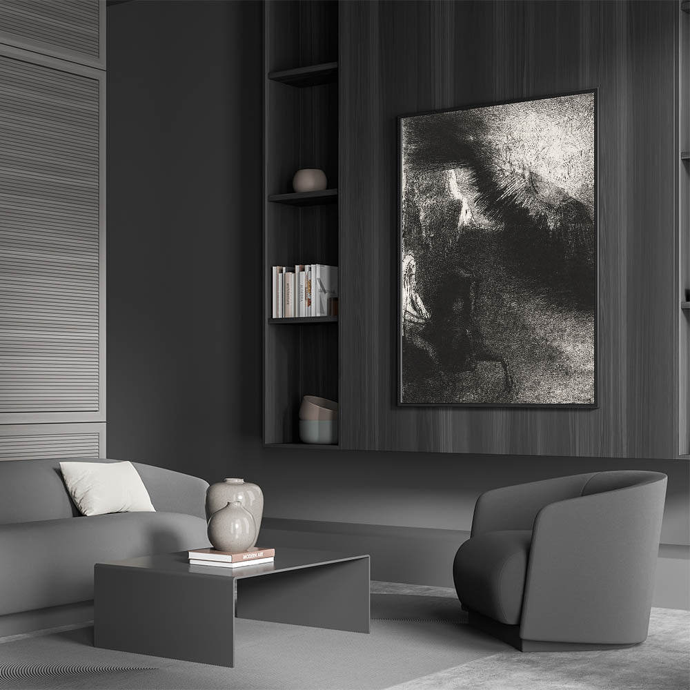 Discover the captivating essence of Gothic wall art with this timeless piece, perfect for adding a mysterious and elegant touch to your home decor. This artwork captures a shadowy figure, radiating an aura of enigma, set against a dramatic, textured background. The interplay of light and dark tones invites viewers into a world of Gothic-inspired design, making it an ideal centerpiece for any room seeking a touch of the mysterious.