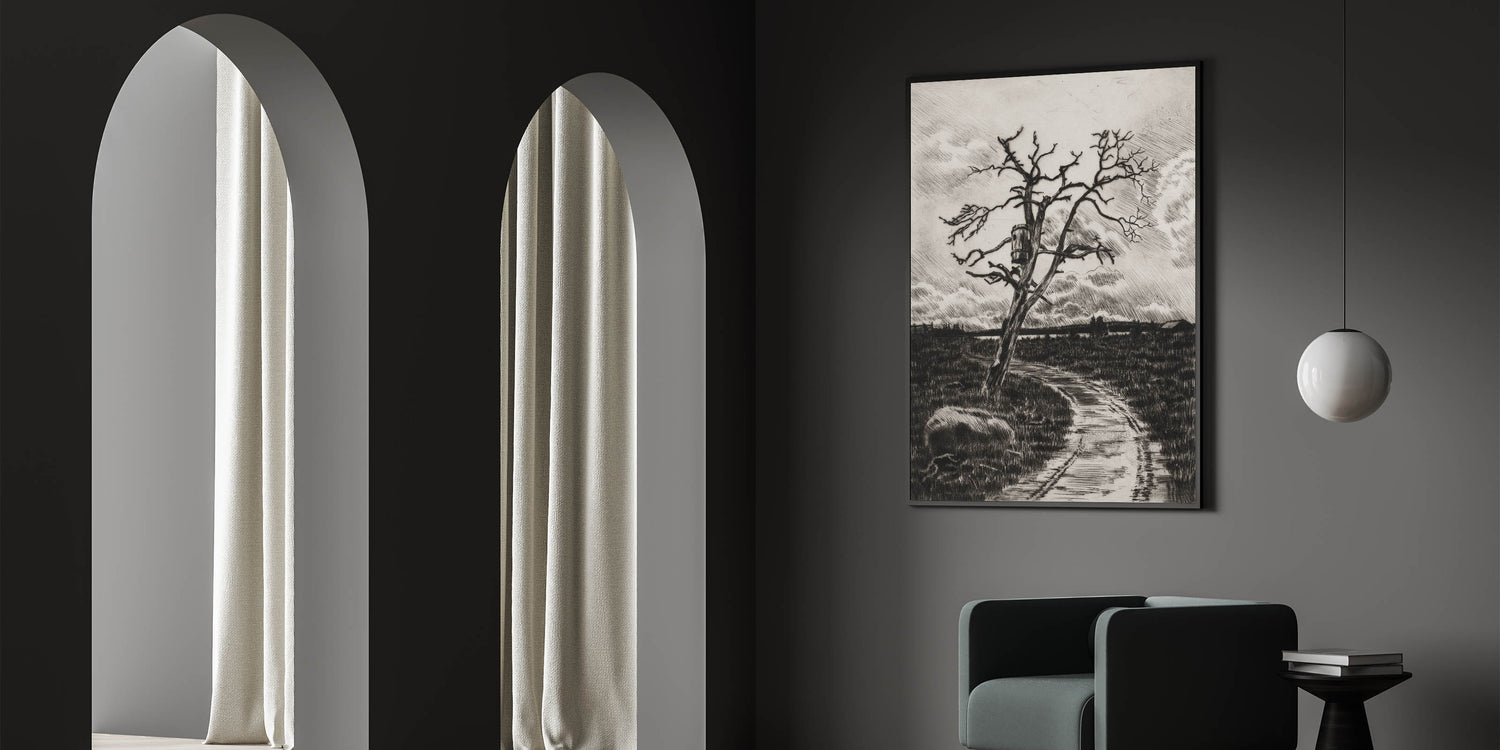 Bring the essence of elegant Gothic prints into your home with this evocative piece, perfect for transforming your space with a touch of the mysterious.
