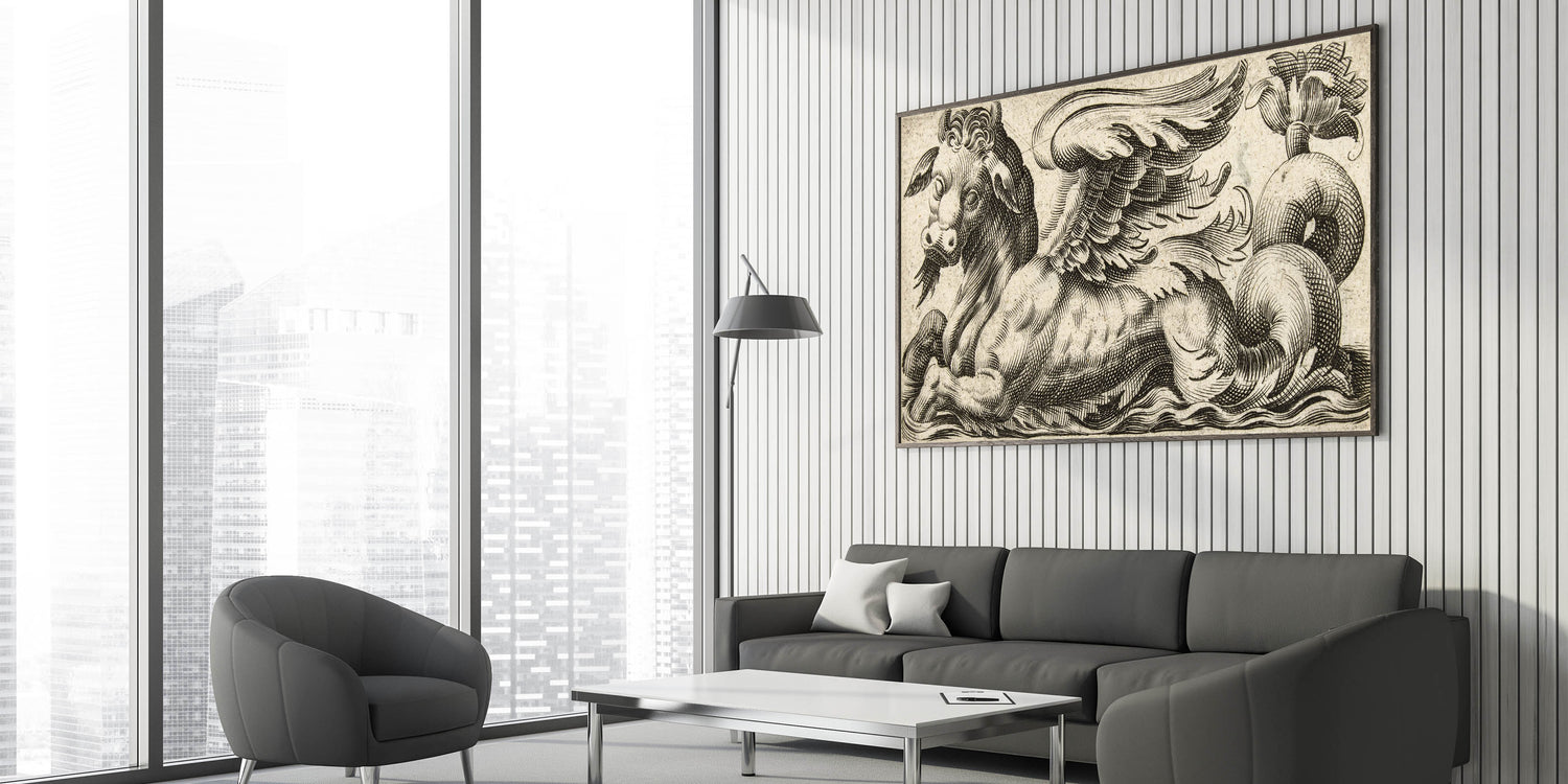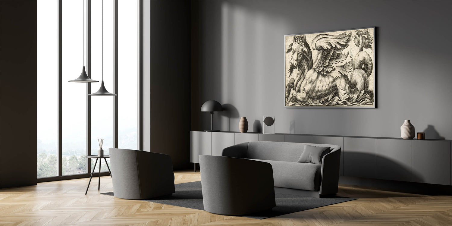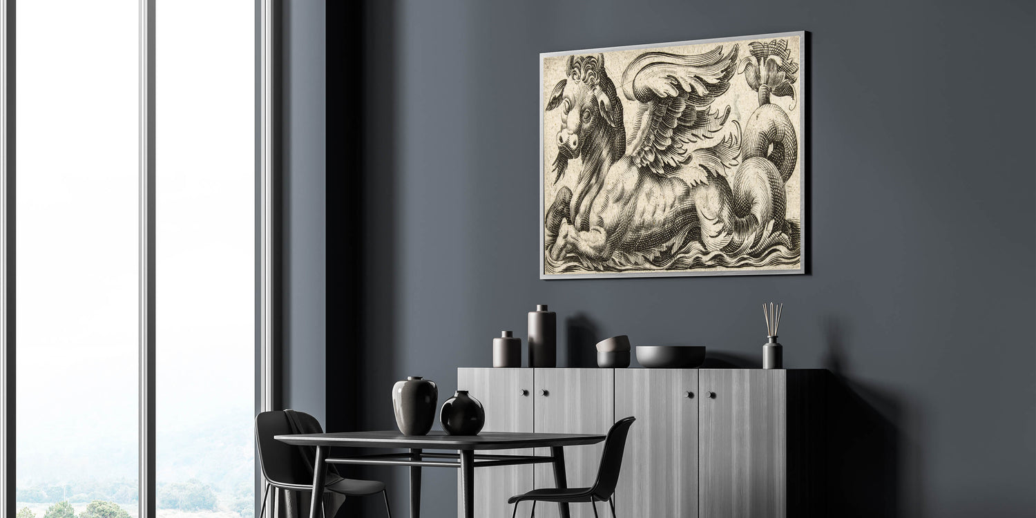 Dive into the world of Gothic mythology with this captivating wall art piece featuring a detailed illustration of a mythical winged beast. This Gothic-inspired design perfectly captures the essence of dark decor and medieval artistry, making it an excellent choice for those who appreciate vintage Gothic prints. The intricate line work and classic depiction of the creature evoke a sense of mystery and timelessness, transforming any space into a Gothic haven.
