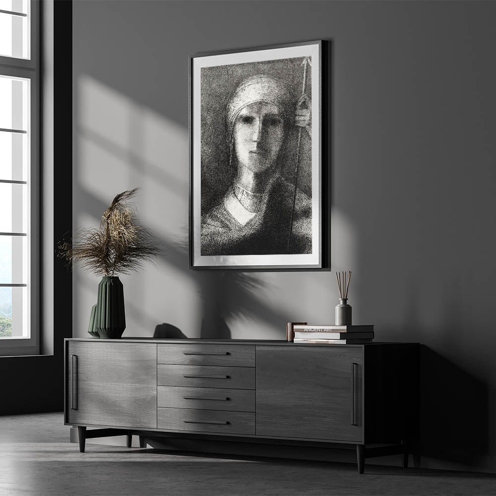 This evocative Gothic portrait depicts a solemn knight, rendered with haunting detail and shadowy textures. The figure’s intense gaze and intricate armor evoke the mystery and chivalry of medieval times, making this piece perfect for those who appreciate the depth and elegance of Gothic art. This artwork adds a touch of dark, timeless sophistication to any space, whether it’s a study, living room, or personal art collection.
