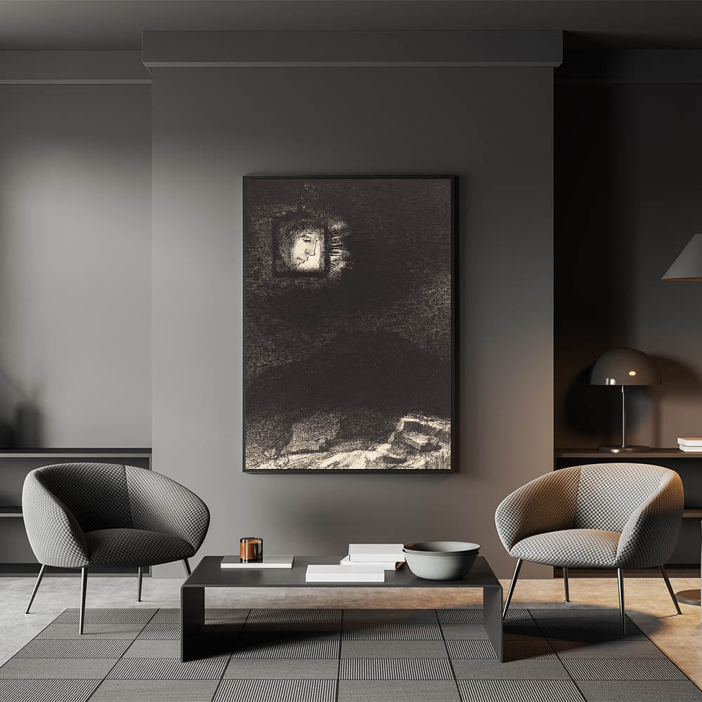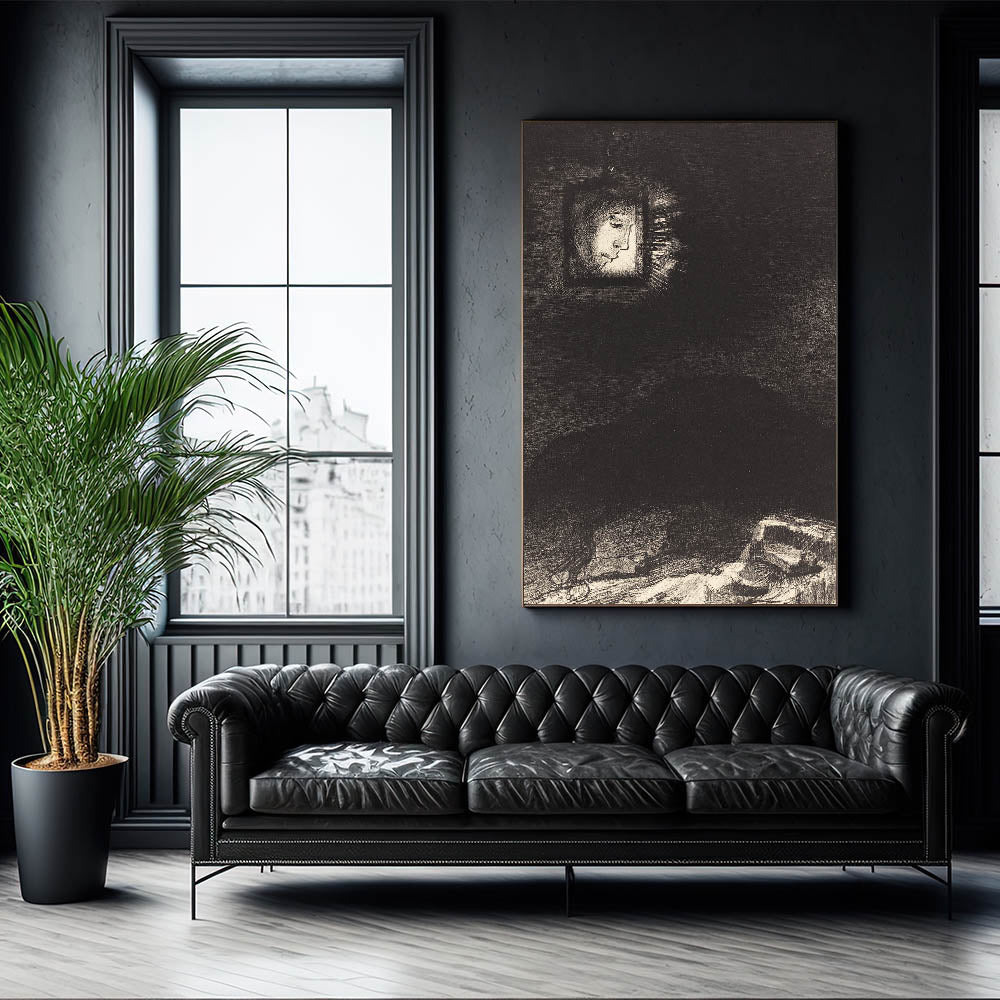 Elevate your space with this evocative Gothic wall art piece that delves into the mysterious and shadowy elements of Gothic design. Featuring an ethereal face illuminated amidst a dark, brooding background, this artwork captures the essence of timeless Gothic wall decor. The deep shadows and the ghostly figure evoke a sense of intrigue and melancholic beauty, making it a perfect addition to your dark decor style collection.