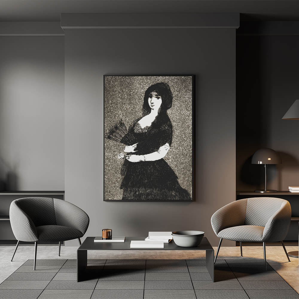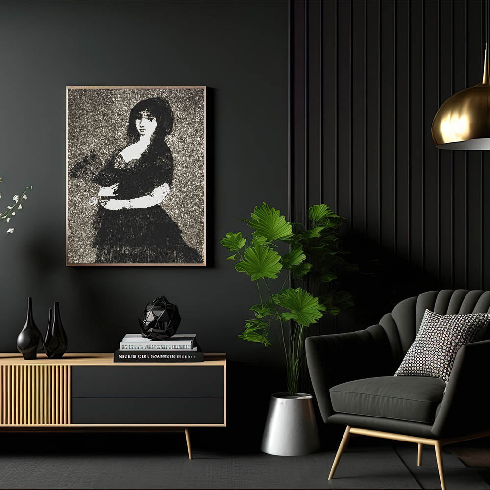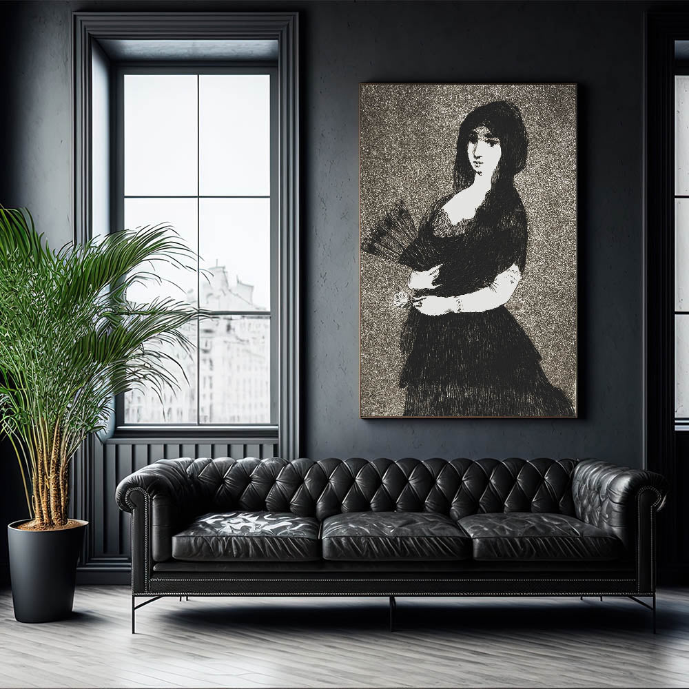 - Gothic-Inspired Design: A captivating portrait of a Victorian lady holding a fan, ideal for adding a touch of mystery to your decor.