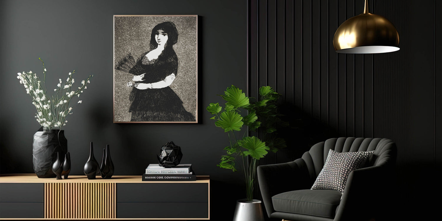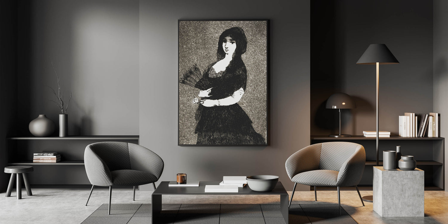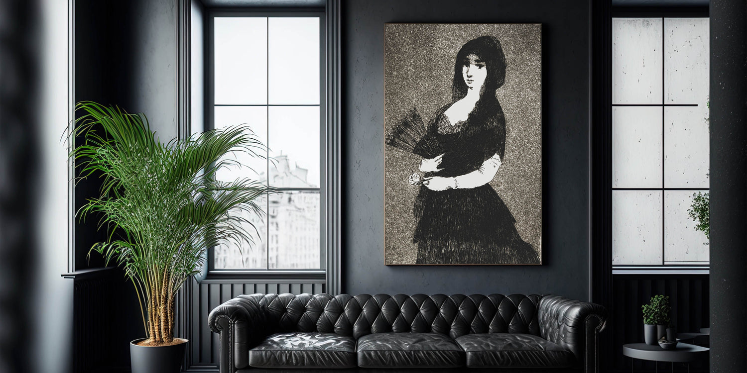 - Gothic-Inspired Design: A captivating portrait of a Victorian lady holding a fan, ideal for adding a touch of mystery to your decor.