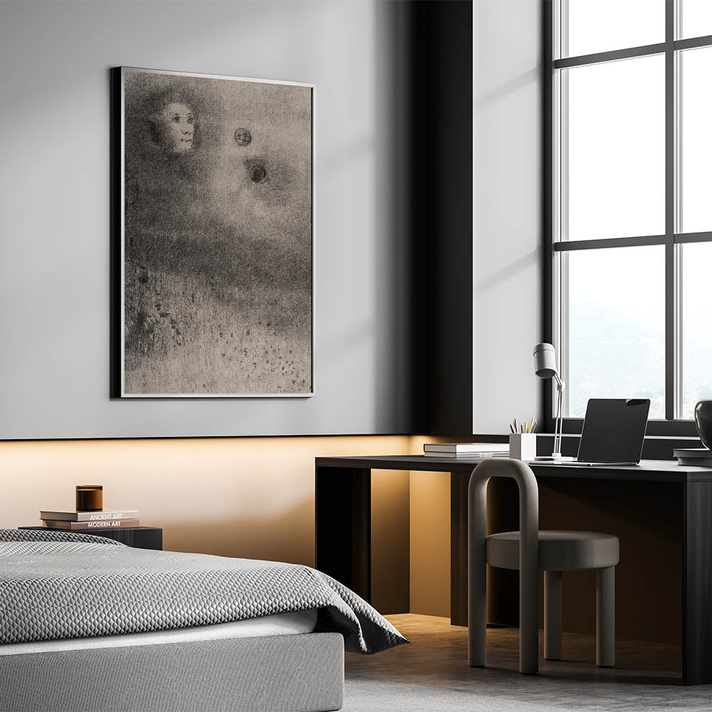 Capture the essence of Gothic elegance with this mesmerizing wall art piece featuring a mysterious night sky adorned with eerie celestial faces. This Gothic-inspired design evokes a timeless and haunting atmosphere, perfect for adding depth and sophistication to your home decor. The monochrome tones create a shadowy aesthetic, bringing a sense of mystery and intrigue to any room.