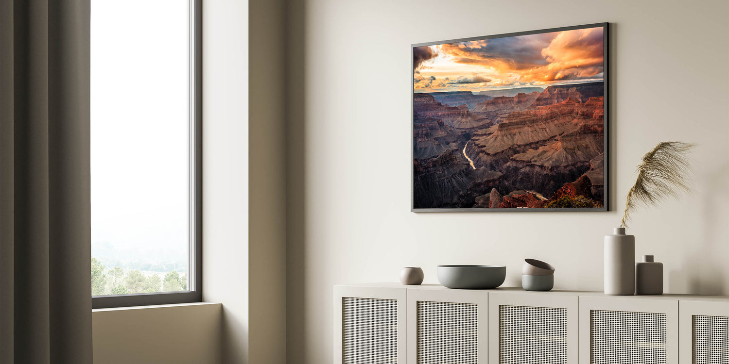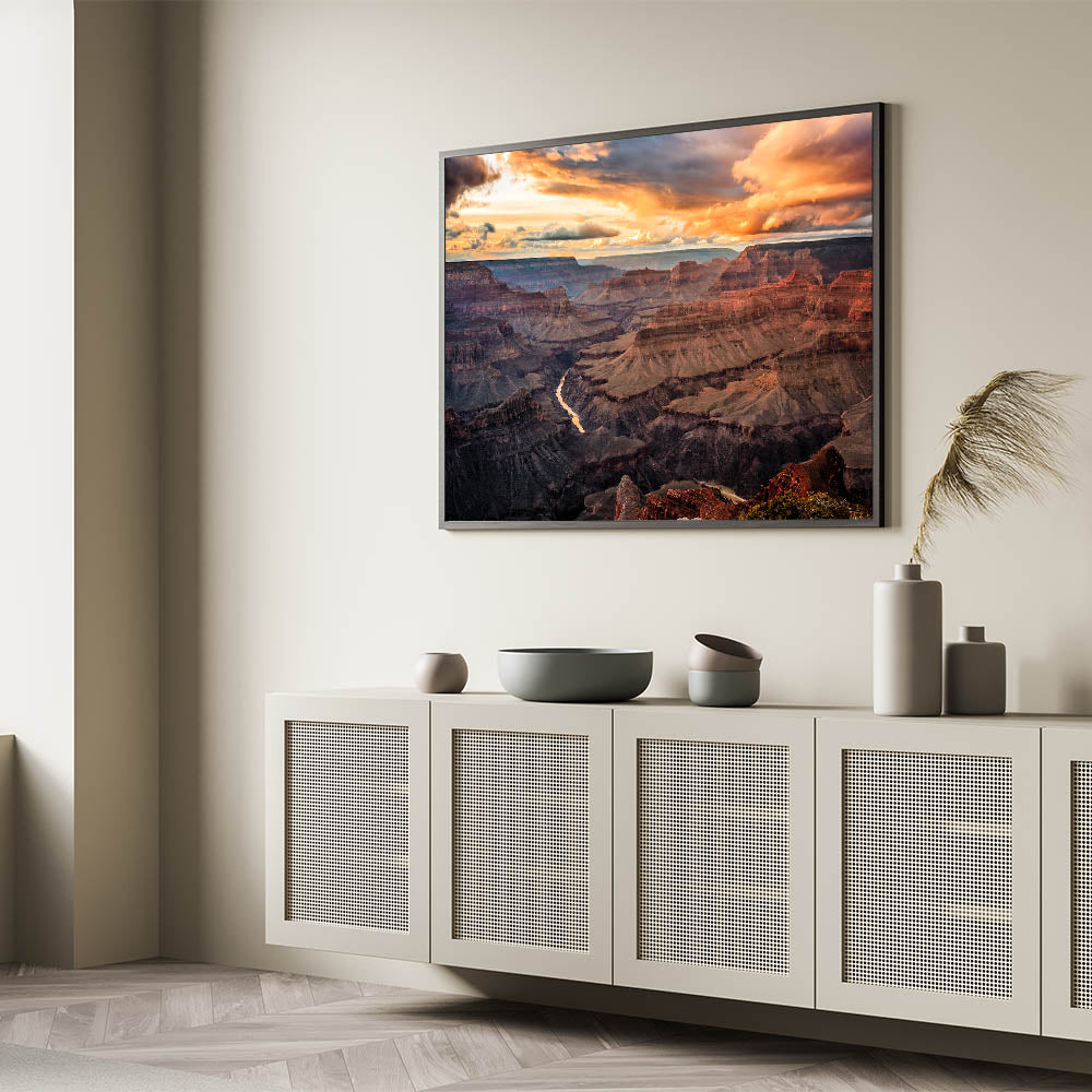 Bring the dramatic beauty of the Grand Canyon sunset into your home, perfect for creating a calming, nature-inspired atmosphere.