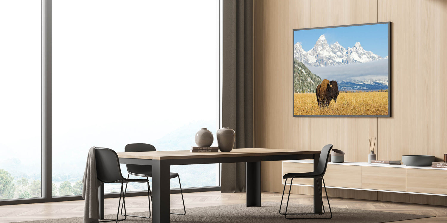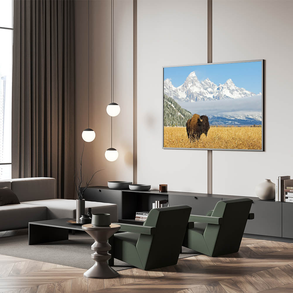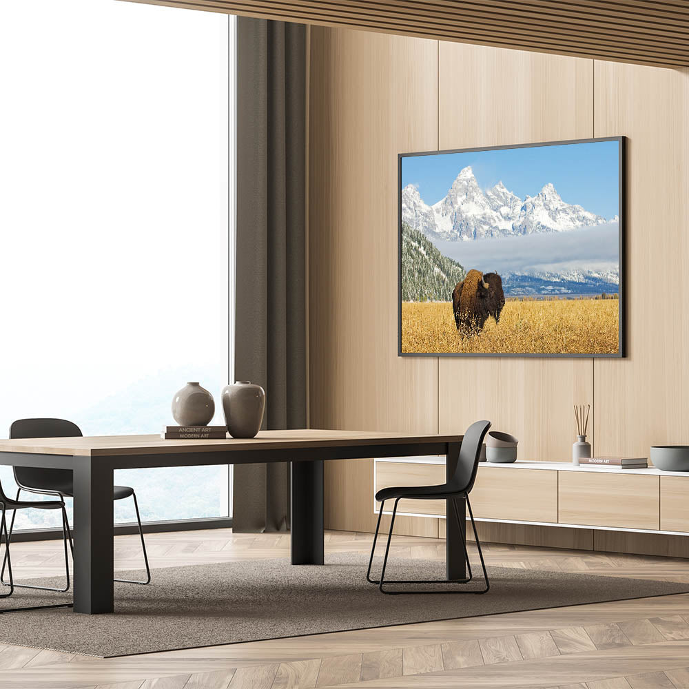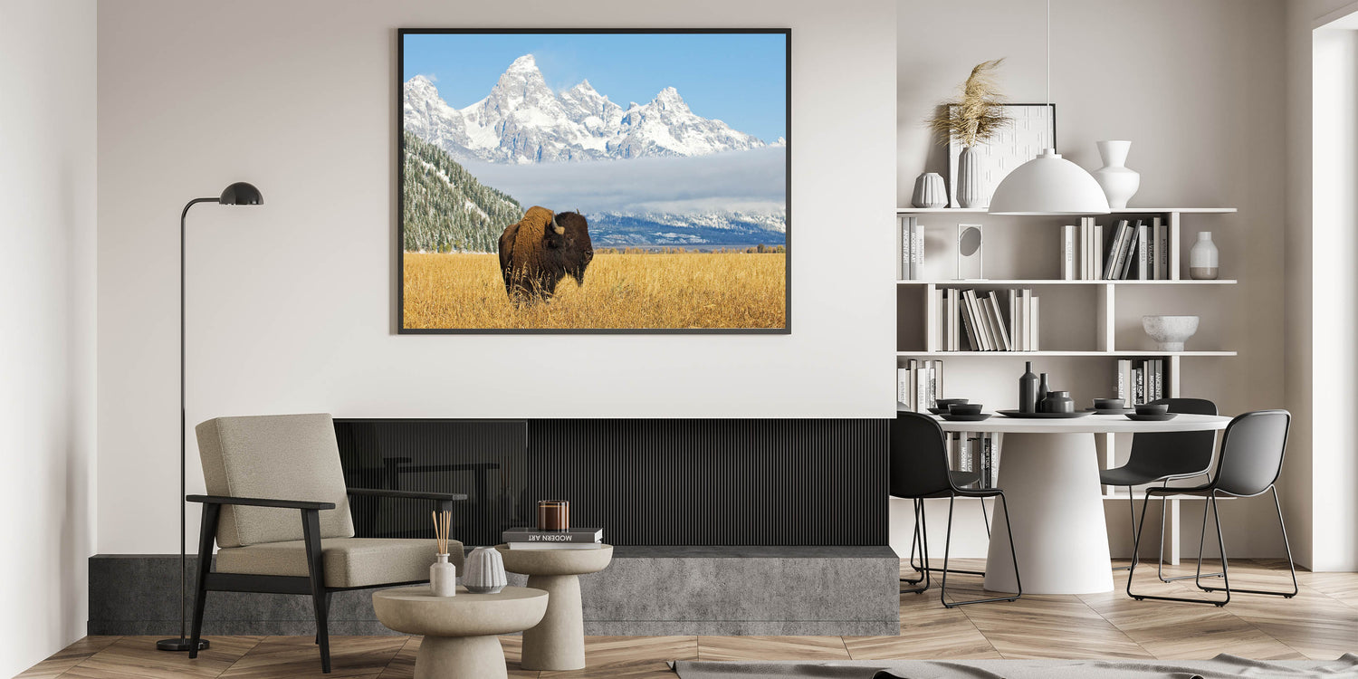 - High-quality Grand Teton photography art showcasing the majestic beauty of the bison and the Teton Range.