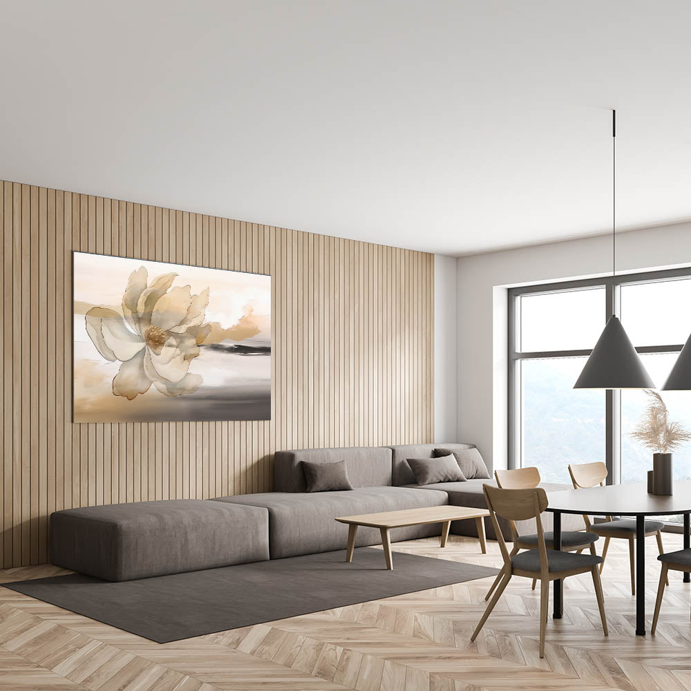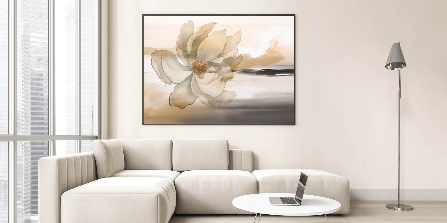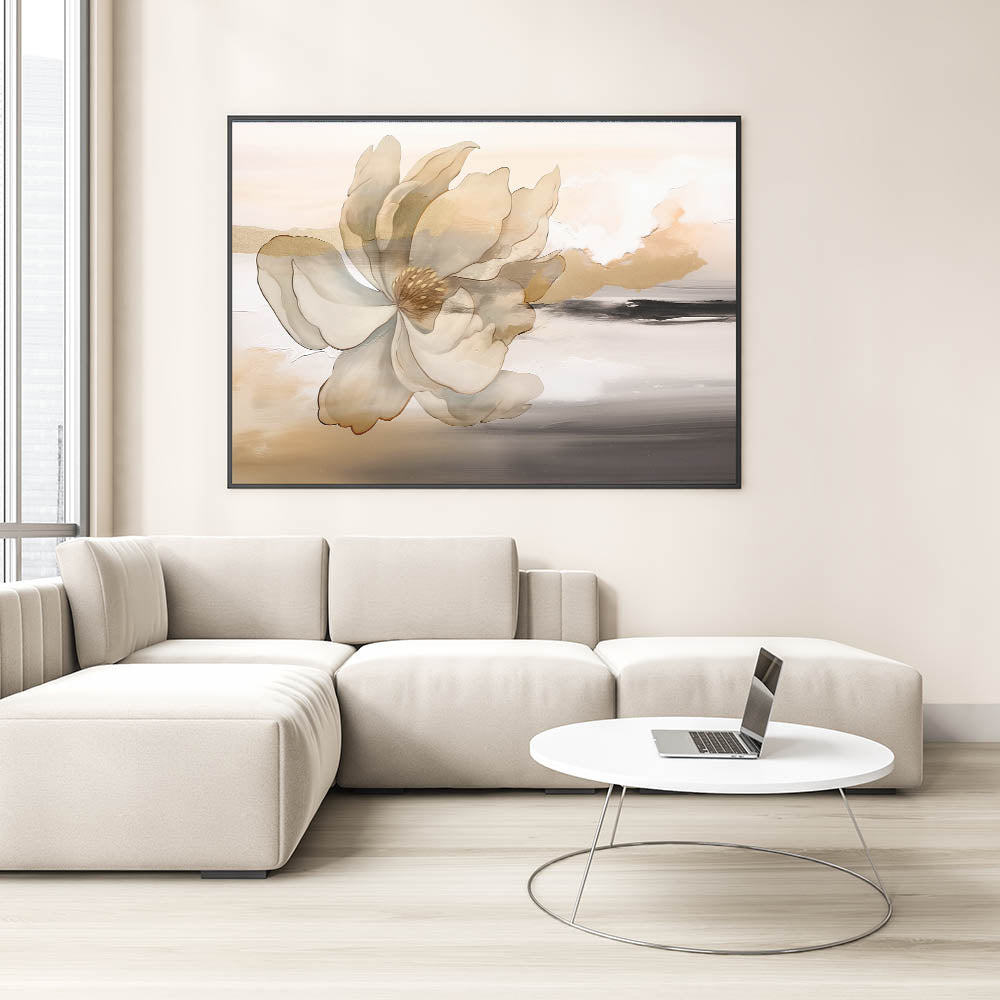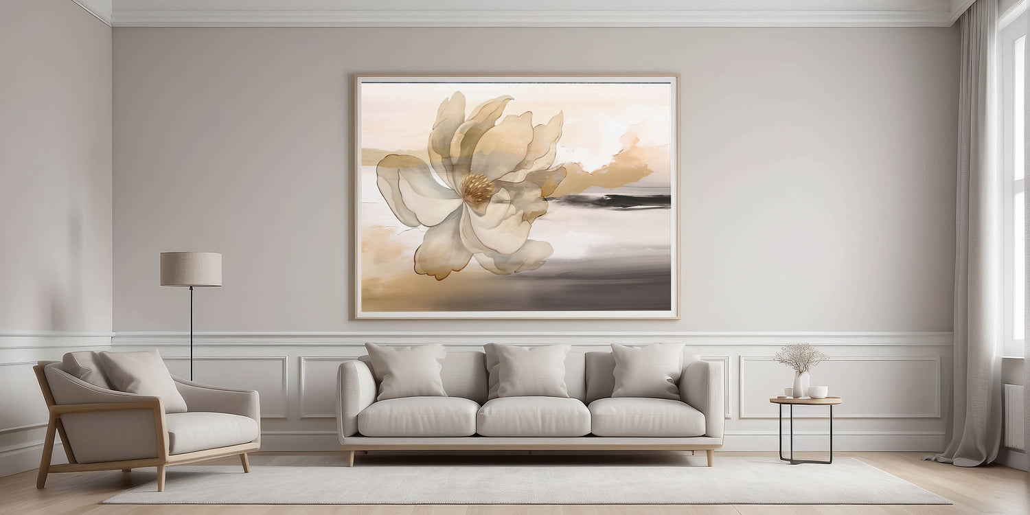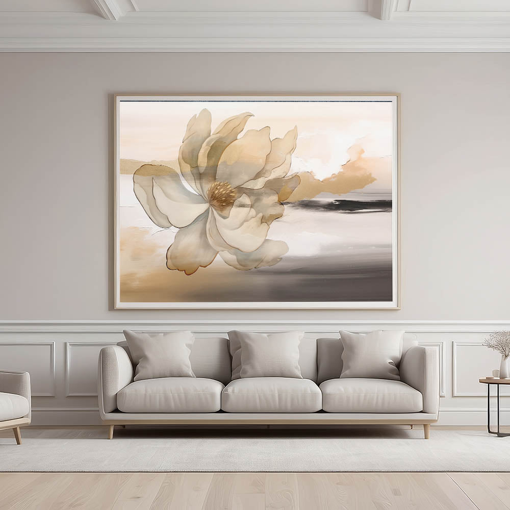 This stunning piece of minimalist abstract art is perfect for those who appreciate the serene beauty of nature combined with modern design. Its neutral color palette and delicate flower motif make it a versatile addition to any decor, ideal for creating a peaceful and inviting environment.