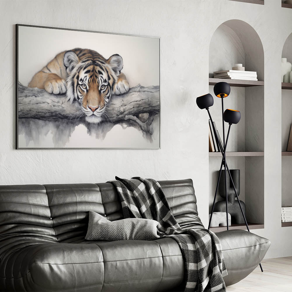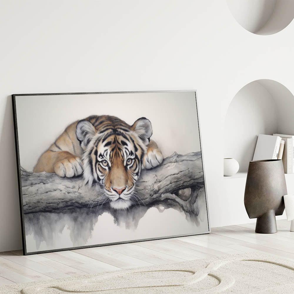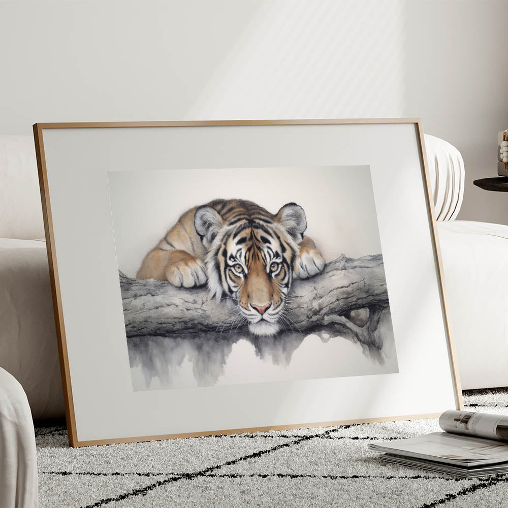 Add a touch of charm and innocence to your space with this Adorable Tiger Cub Wall Art. Featuring a young tiger cub resting on a branch, this artwork captures the tender and playful side of wildlife, making it a delightful addition to any room. The soft colors and gentle expression of the cub create a warm and inviting atmosphere, perfect for nurseries, living rooms, or any area that could use a touch of nature's sweetness. Available in various formats, including Stretched Canvas, Framed Canvas, Acrylic Glass, Framed Acrylic Glass, Framed Print, Rolled Canvas, and Rolled Print, this piece offers flexibility to fit your decor style.