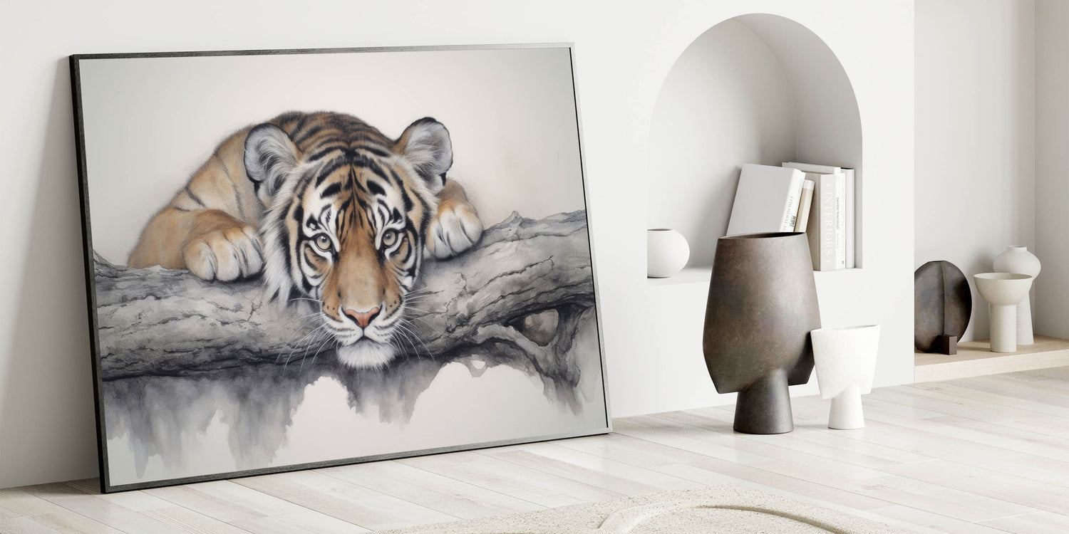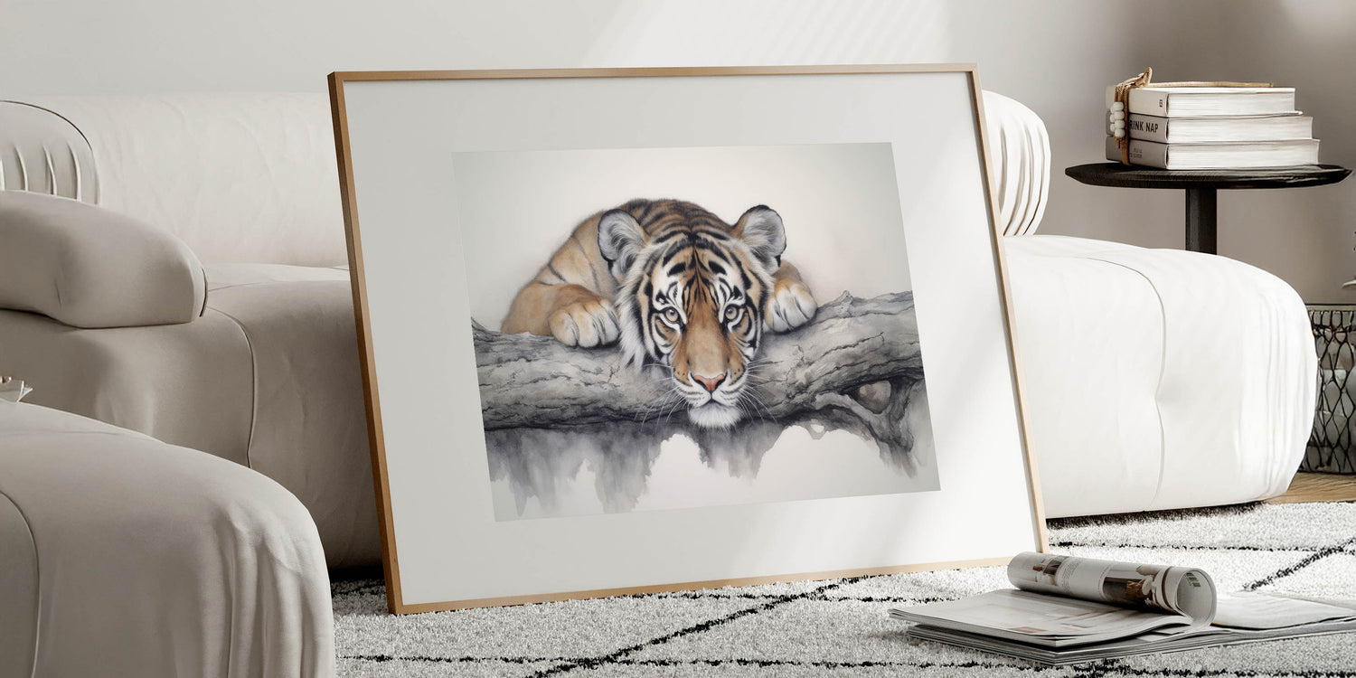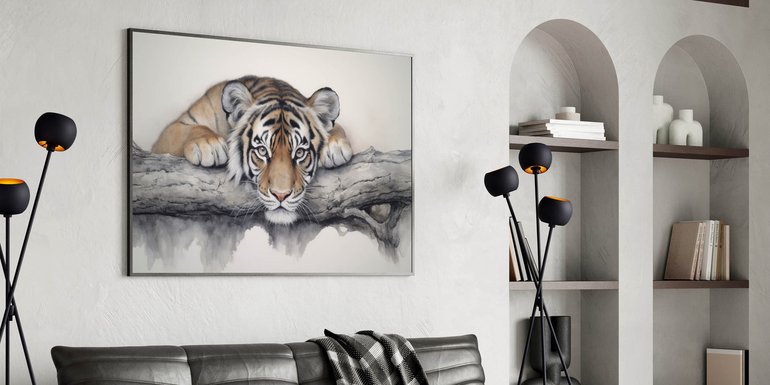 Add a touch of charm and innocence to your space with this Adorable Tiger Cub Wall Art. Featuring a young tiger cub resting on a branch, this artwork captures the tender and playful side of wildlife, making it a delightful addition to any room. The soft colors and gentle expression of the cub create a warm and inviting atmosphere, perfect for nurseries, living rooms, or any area that could use a touch of nature's sweetness. Available in various formats, including Stretched Canvas, Framed Canvas, Acrylic Glass, Framed Acrylic Glass, Framed Print, Rolled Canvas, and Rolled Print, this piece offers flexibility to fit your decor style.