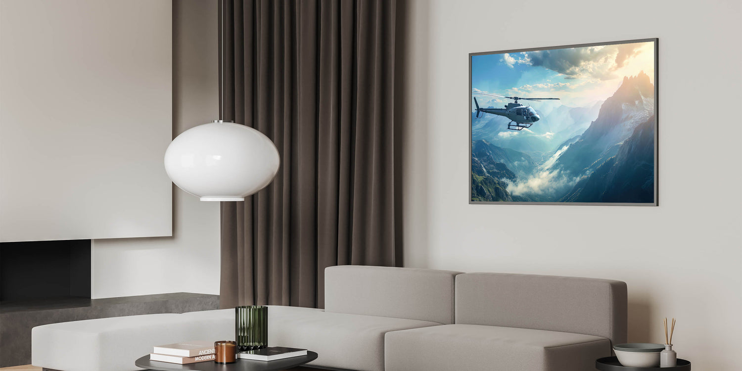Aerial Mountain View Helicopter Wall Art - Stunning Aviation Print