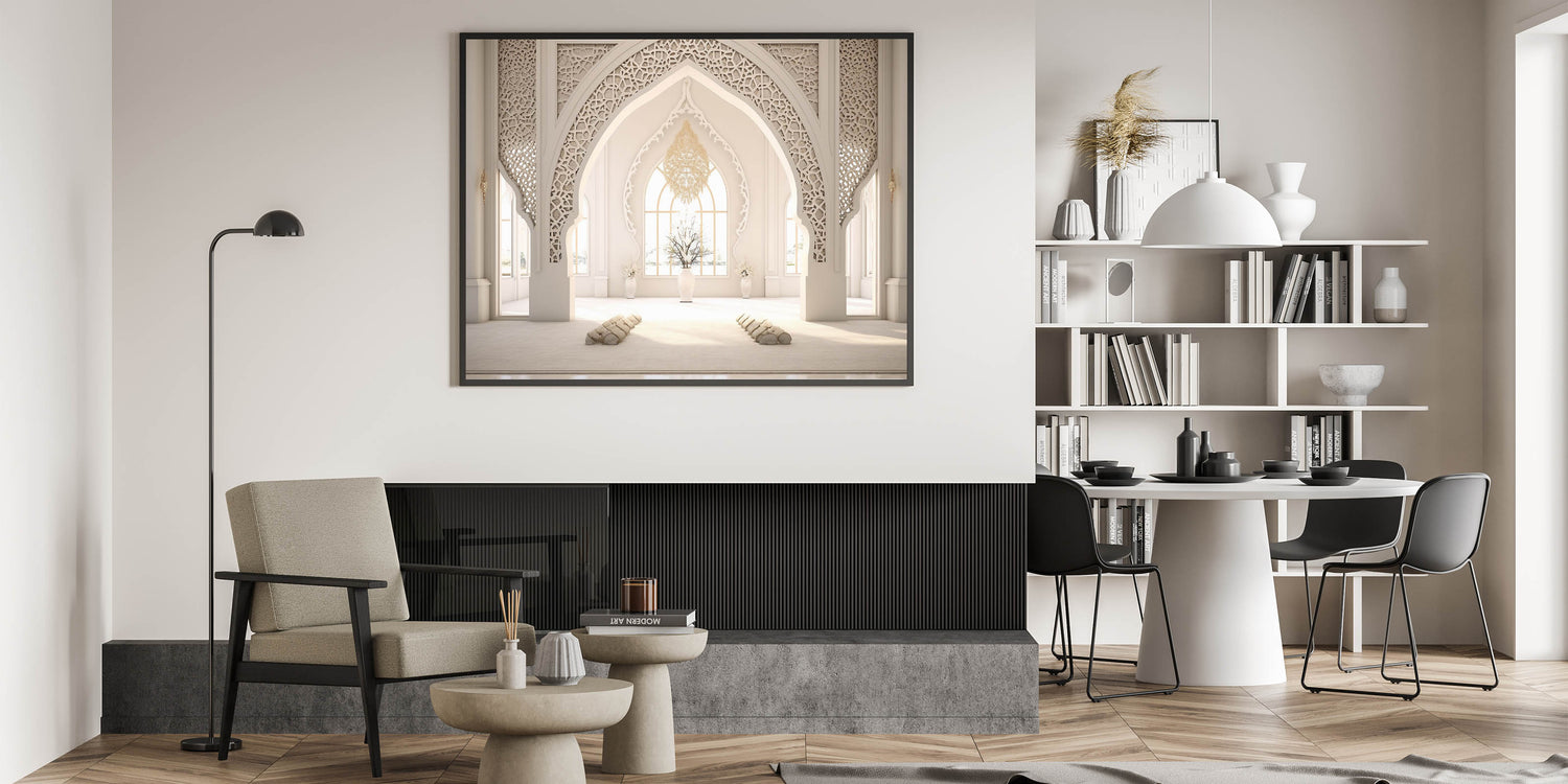 - Scenic Afghanistan wall decor featuring serene mosque interiors with intricate designs