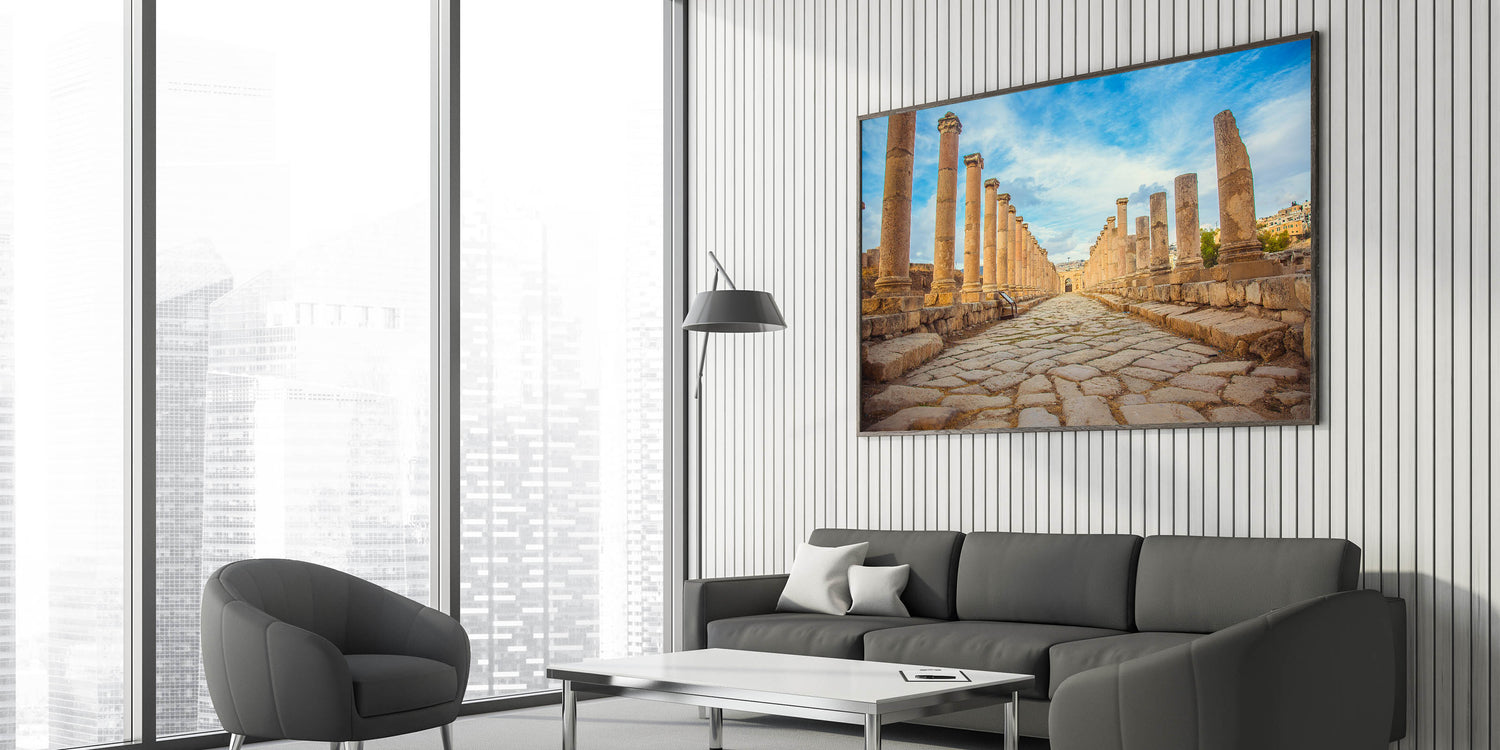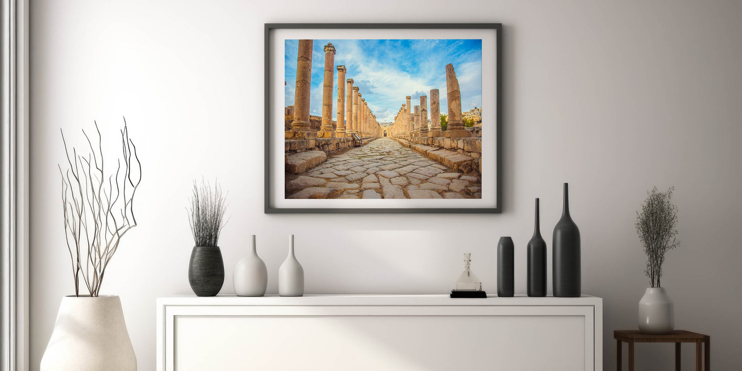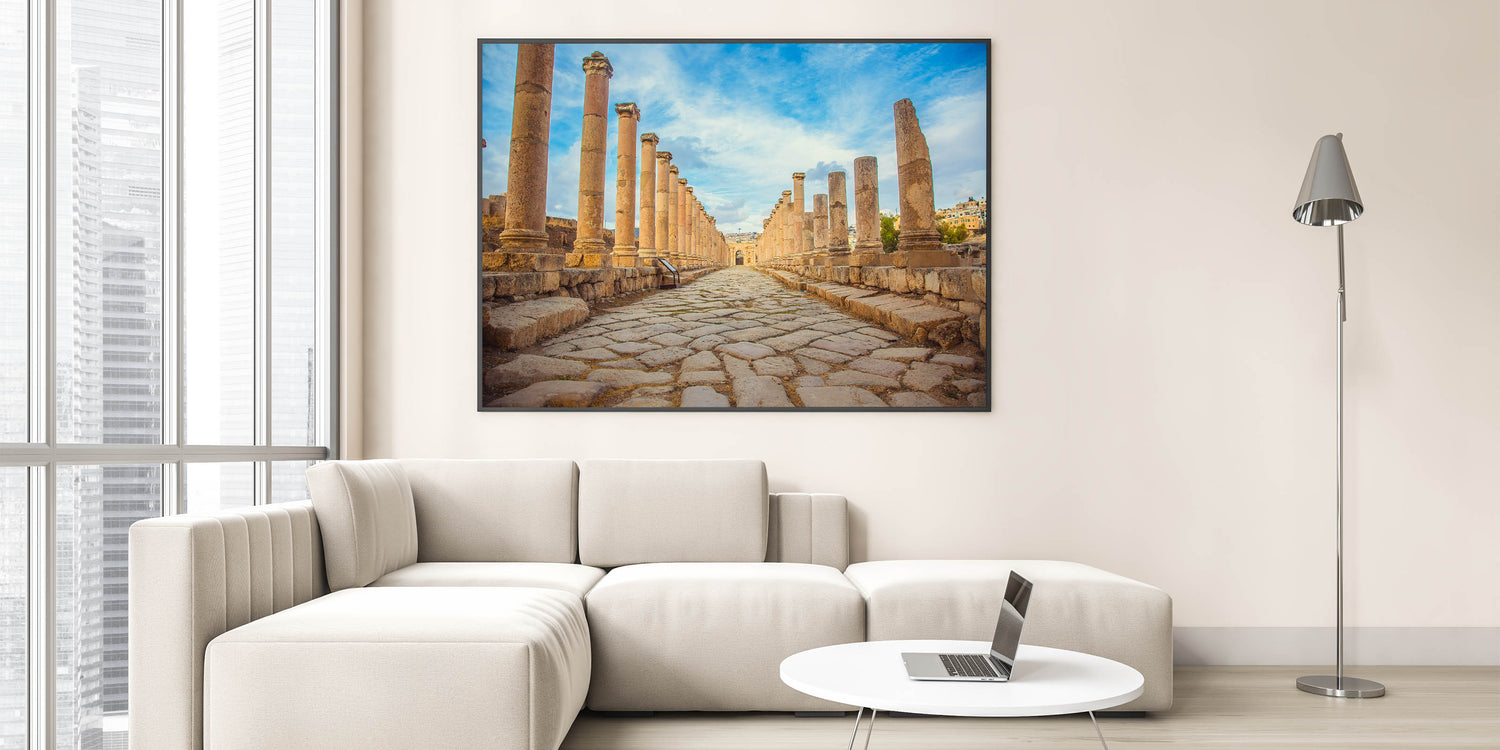 Transport your space into a realm of history and grandeur with this stunning Ancient Ruins Wall Art. Featuring the awe-inspiring remains of an ancient architectural wonder, this print is perfect for history and art enthusiasts alike. The intricately preserved columns and cobbled path evoke a sense of timelessness, making it a perfect addition to any room.
