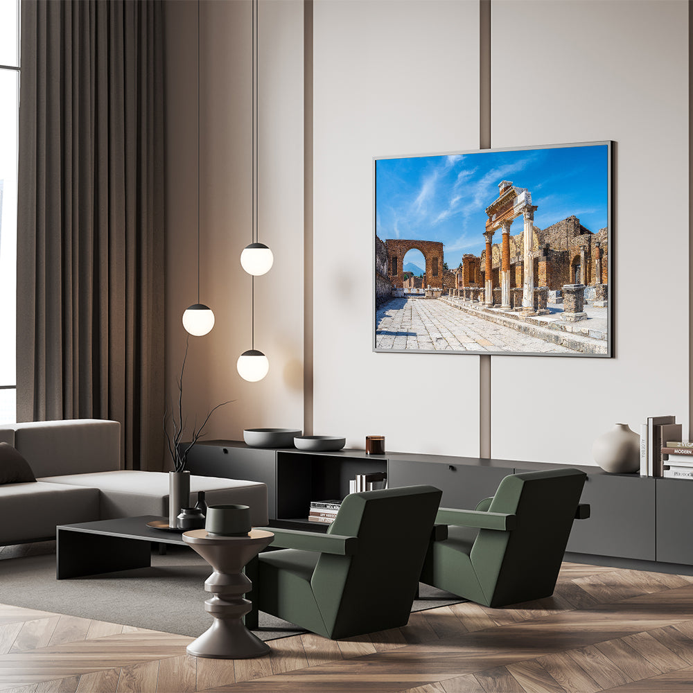 Explore the timeless beauty of Pompeii with this stunning Roman Ruins Wall Art. Featuring the ancient ruins of Pompeii with a view of Mount Vesuvius in the background, this artwork captures the historical significance and architectural brilliance of the Roman Empire. The vibrant colors and intricate details of the ruins make this piece a captivating addition to any space that celebrates history and classical design.