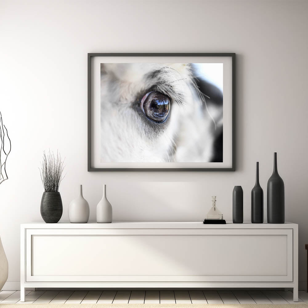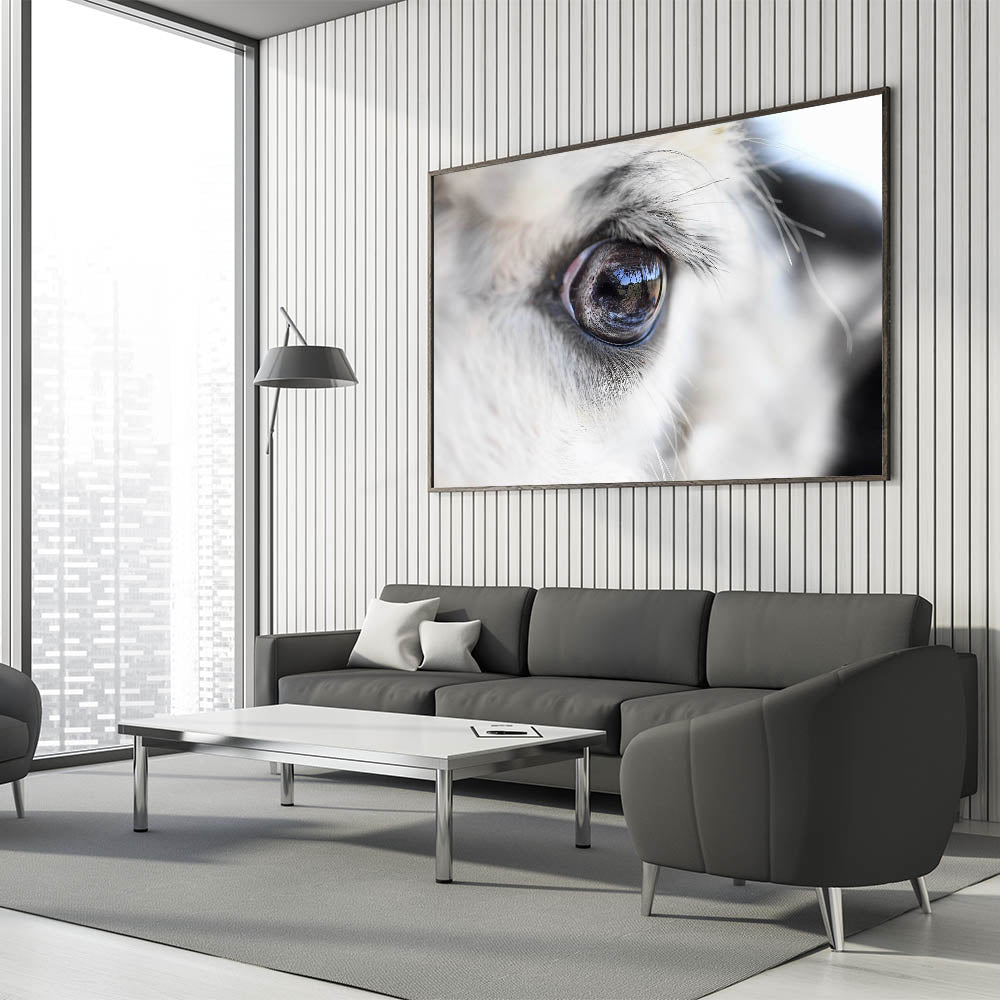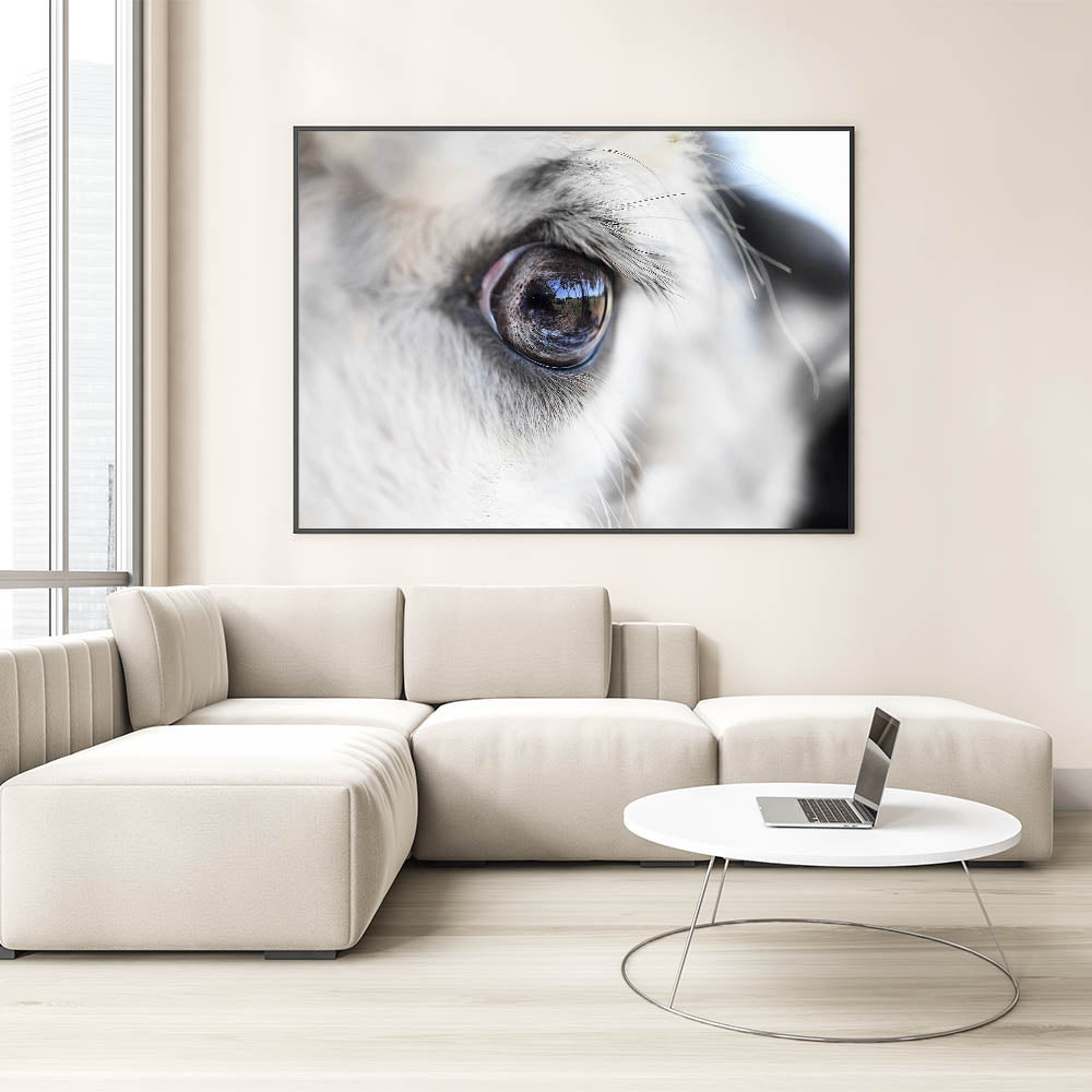 Discover the beauty of nature with this serene Animal Wall Art featuring a close-up of an animal's eye. The reflection in the eye, combined with the delicate textures of the fur, brings a sense of calm and connection to the natural world. This Stunning Animal Photography captures a peaceful moment, making it an ideal addition to any room in need of a tranquil, nature-inspired atmosphere.