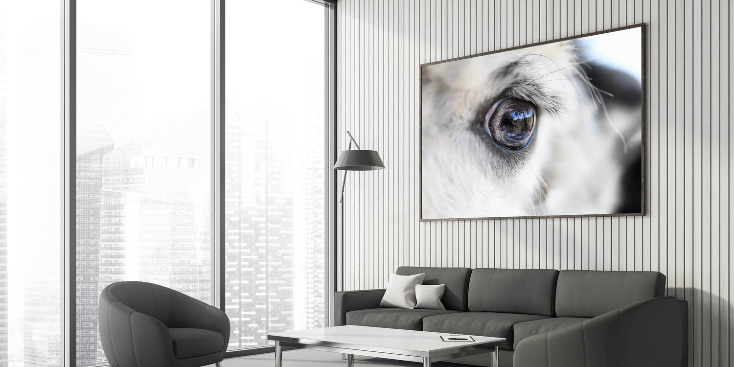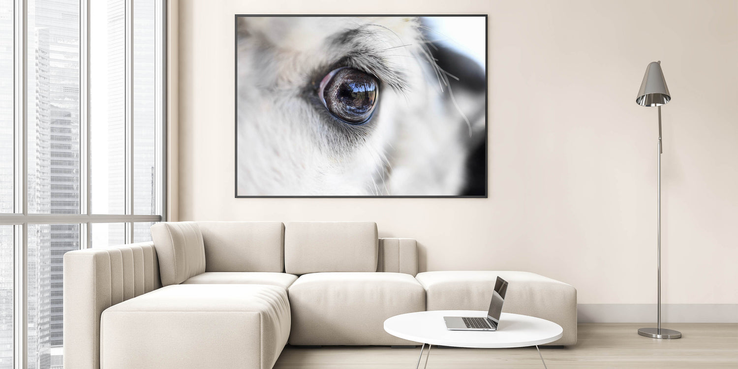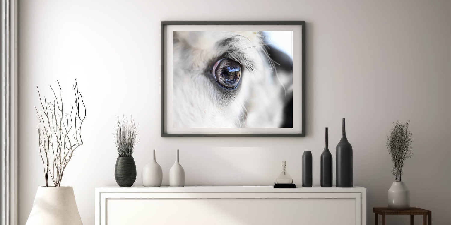 Discover the beauty of nature with this serene Animal Wall Art featuring a close-up of an animal's eye. The reflection in the eye, combined with the delicate textures of the fur, brings a sense of calm and connection to the natural world. This Stunning Animal Photography captures a peaceful moment, making it an ideal addition to any room in need of a tranquil, nature-inspired atmosphere.