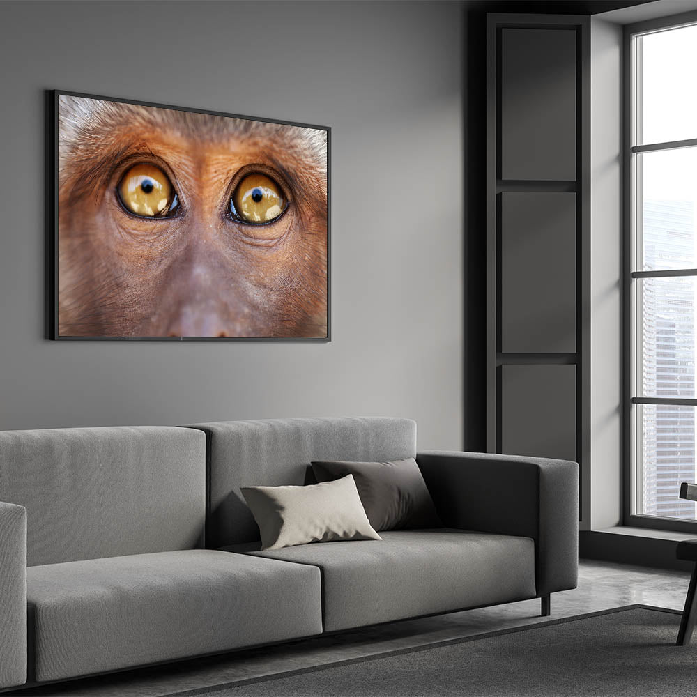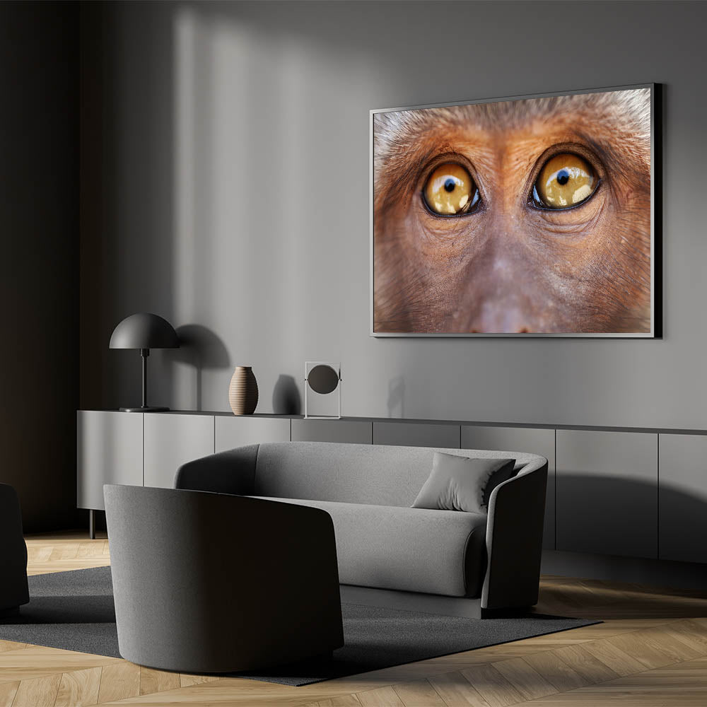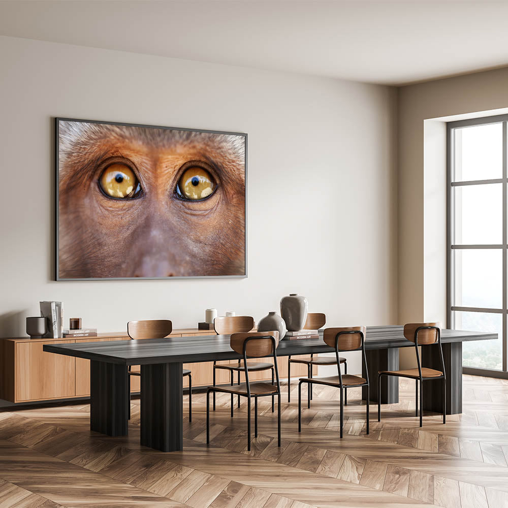 Bring the beauty of nature into your home with this stunning piece of Animal Wall Art featuring a mesmerizing close-up of a monkey’s eyes. This highly detailed photograph captures the essence of wildlife with its piercing gaze, drawing you into the depths of the natural world. The close-up photography highlights the textures and colors of the monkey’s face, offering an intimate look into the animal kingdom.