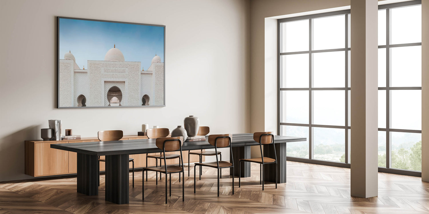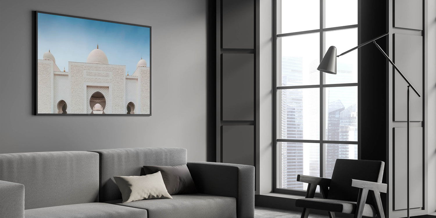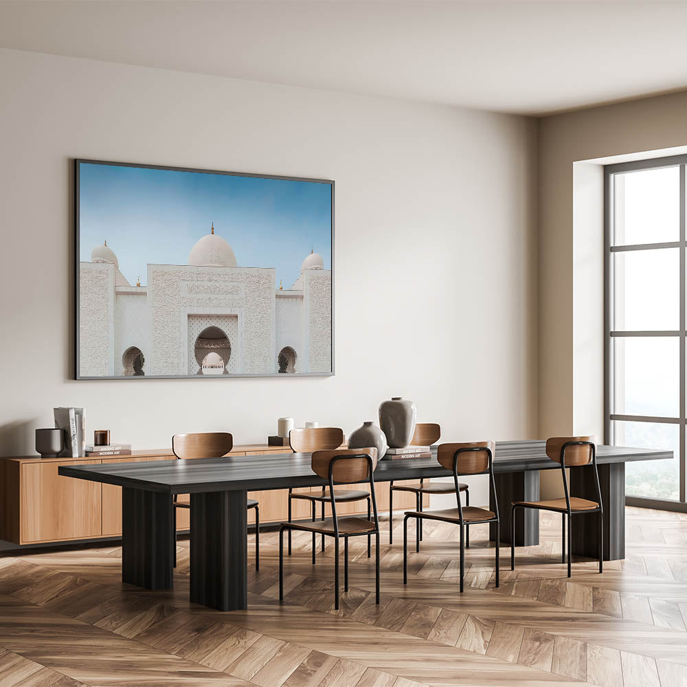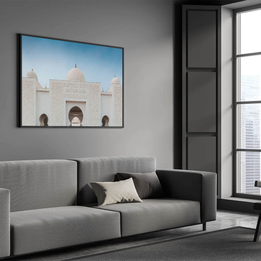 This art piece celebrates the grandeur and intricate details of one of Abu Dhabi’s most famous landmarks, creating a focal point that inspires admiration and tranquility. Whether placed in a living space or a professional setting, this print is a timeless addition to your décor.