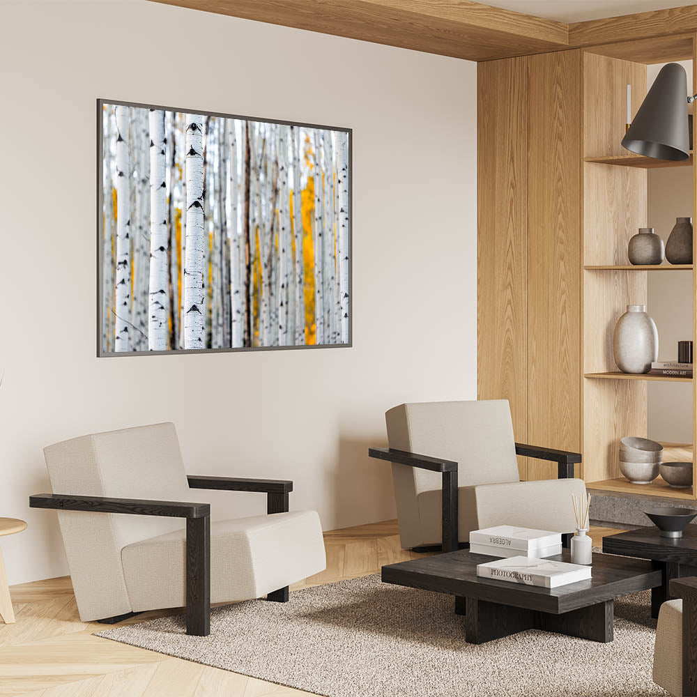This tree artwork captures the calming essence of a birch tree forest in fall, making it an excellent choice for bringing warmth and tranquility to your home. Whether you're creating a natural focal point or complementing your existing decor, this tree canvas print adds an elegant and timeless touch to any room.