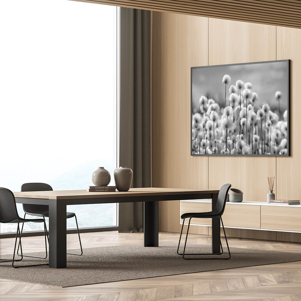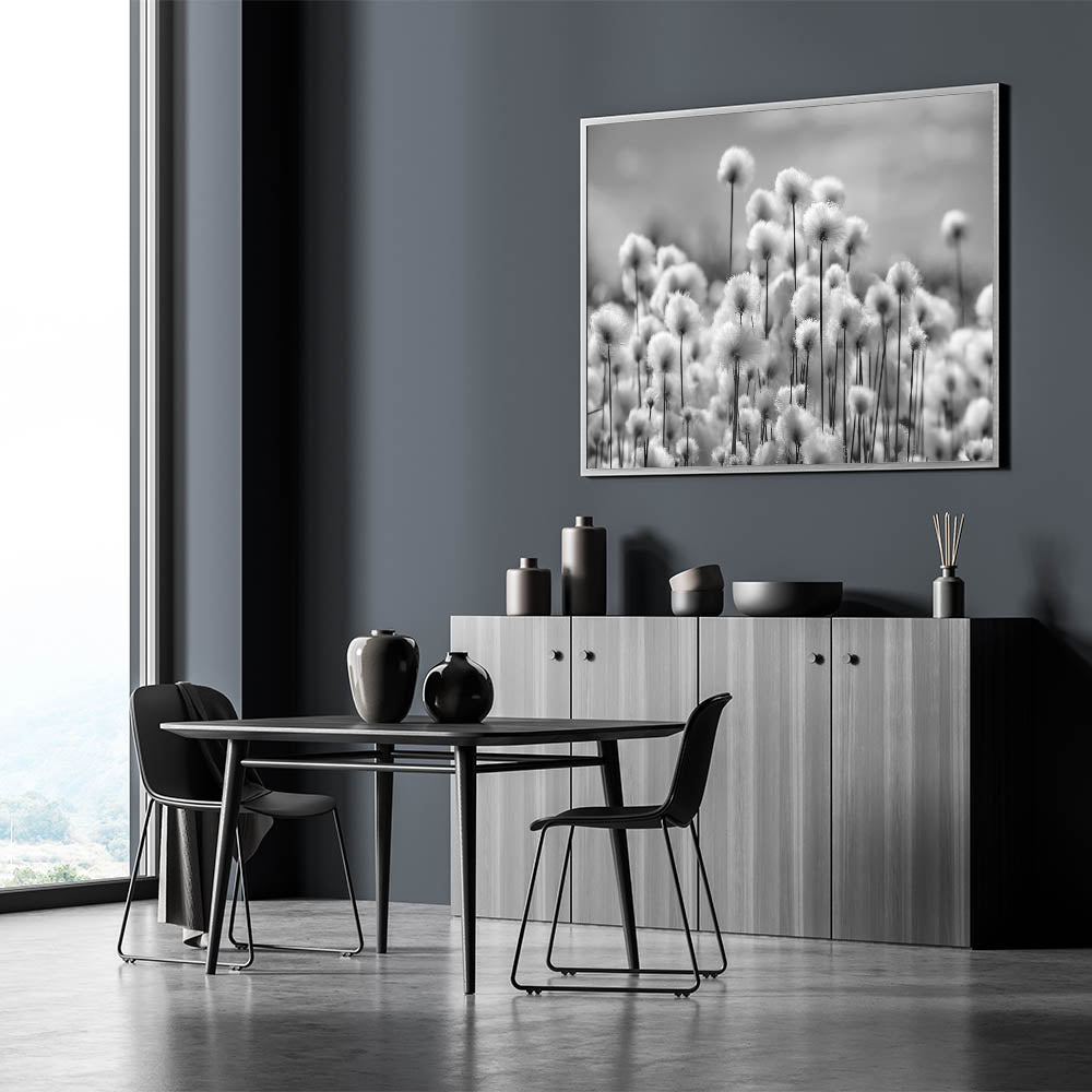 - Minimalist Black and White Dandelion Art suitable for a variety of interior styles
