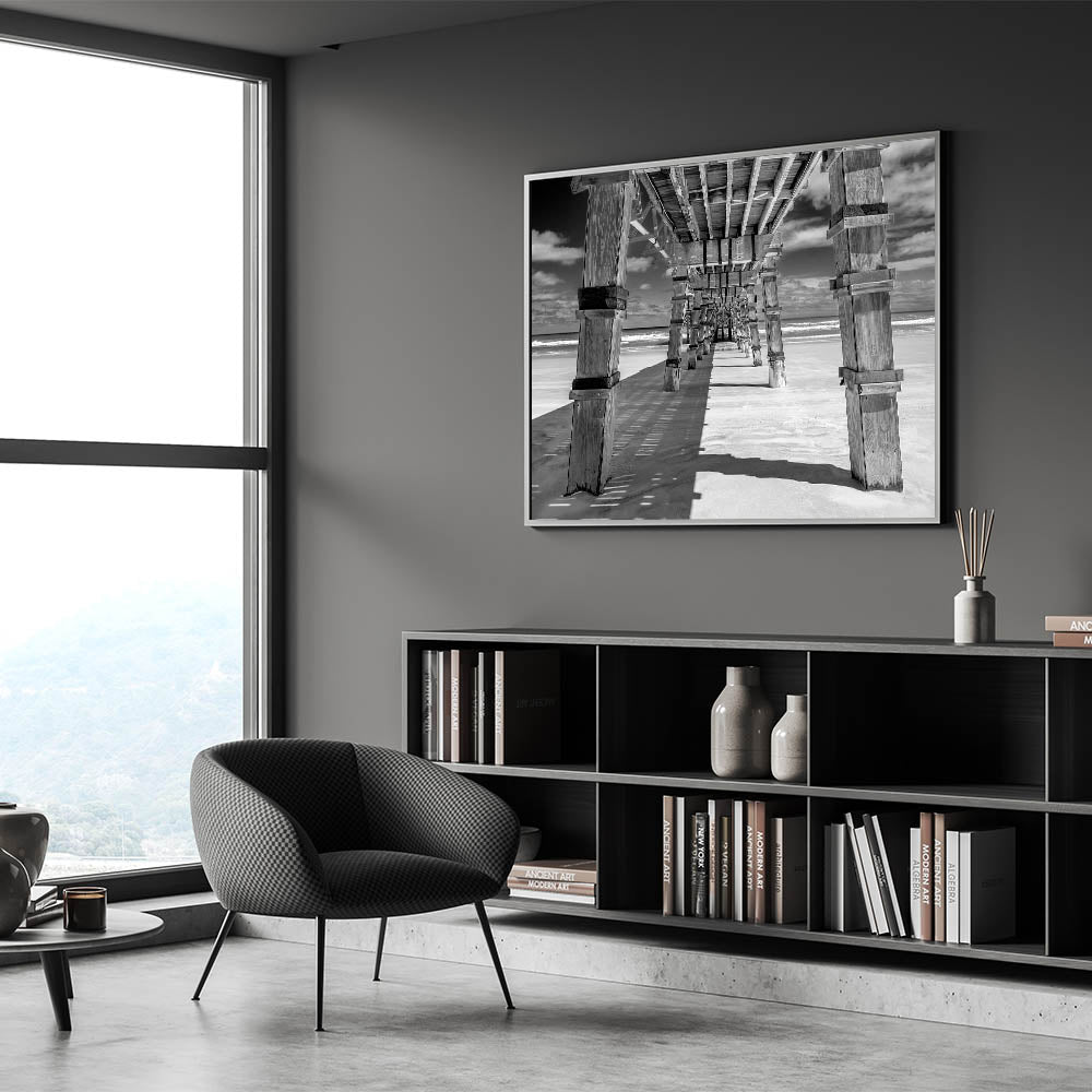 Whether you are a lover of architectural photography or simply appreciate the stark beauty of black and white art, this Daytona Beach pier print is sure to enhance your space with its bold, eye-catching design.