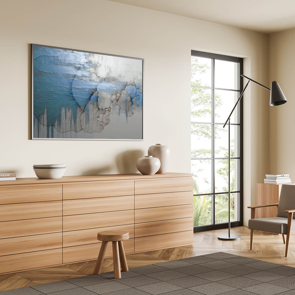 - Modern and Minimalist Design: The abstract geometric lines and soothing blue tones are ideal for contemporary and minimalist decor.