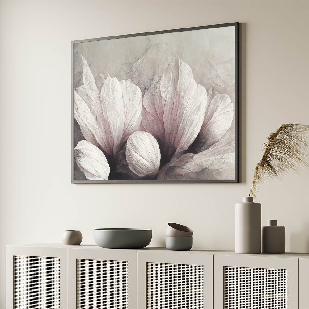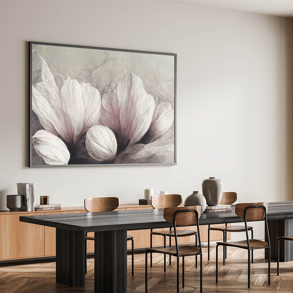 Transform your space with the subtle beauty of this blush petals abstract floral canvas. The artwork showcases delicate, softly tinted petals in shades of blush pink and beige, creating a gentle and inviting atmosphere. This modern botanical piece is ideal for adding a touch of softness and warmth to any room, making it a perfect choice for those who appreciate understated elegance.