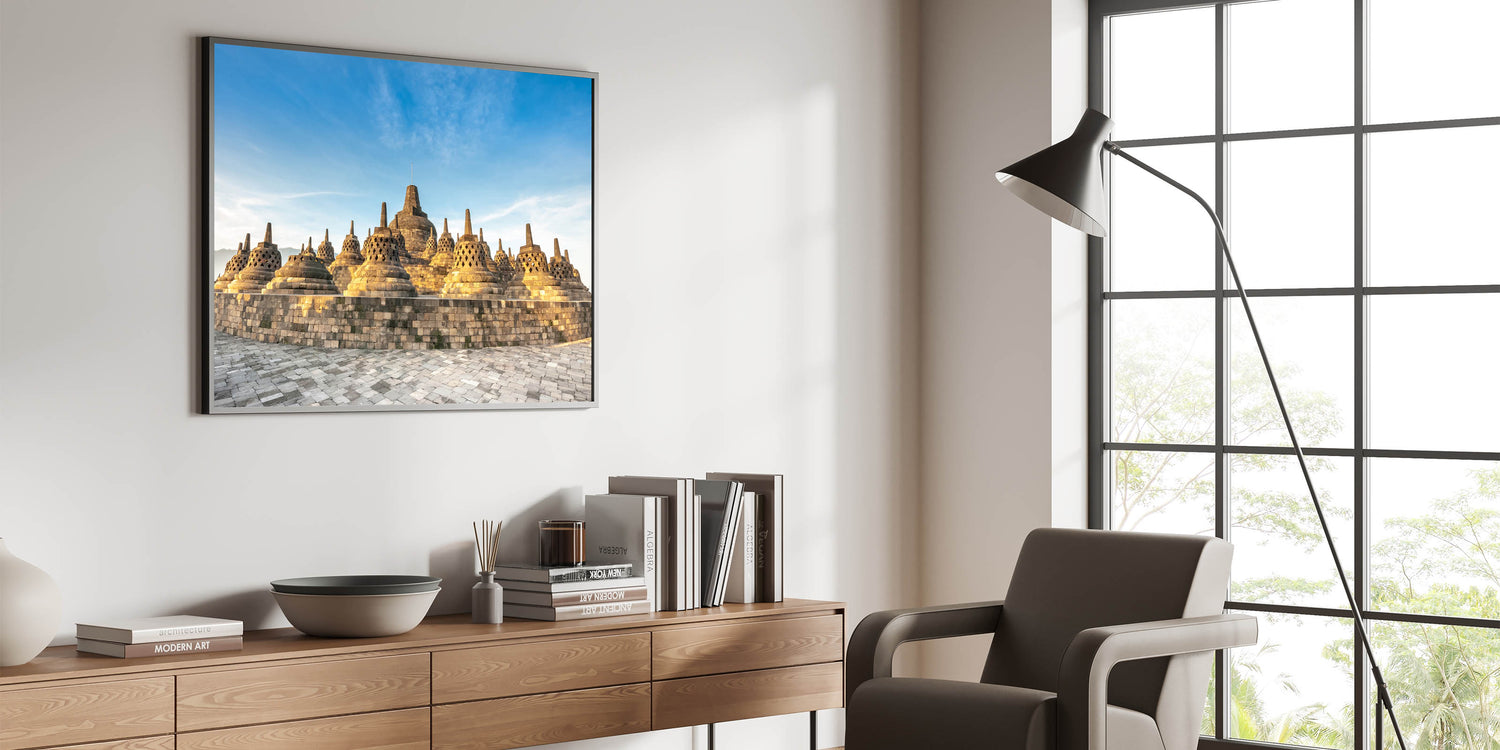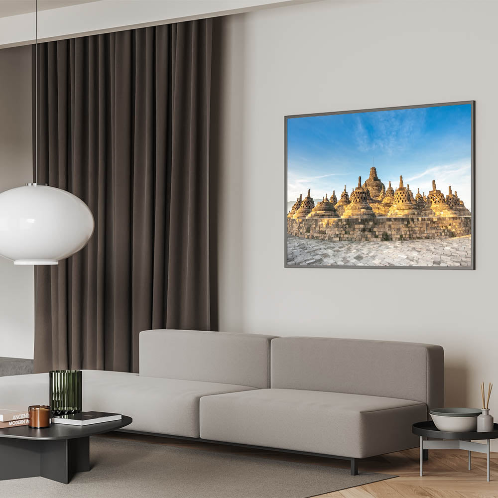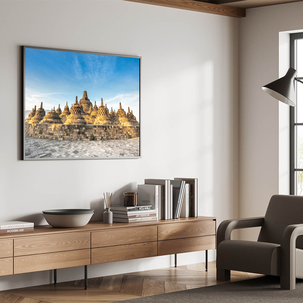 Transform your space with this magnificent piece of Indonesian history. Whether you are an art collector or a lover of world heritage, this Borobudur Temple artwork will elevate your decor and transport you to the heart of ancient Indonesia. An excellent choice for those who appreciate the fusion of art, culture, and history.