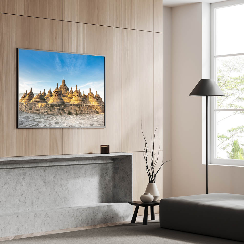 Celebrate the grandeur of Indonesia’s historical architecture with this stunning wall art featuring the iconic Borobudur Temple. This UNESCO World Heritage site is depicted in all its glory, with its distinctive stupas bathed in the soft morning light. The intricate stone carvings and symmetrical layout are beautifully captured, making this piece perfect for those who appreciate both history and culture.