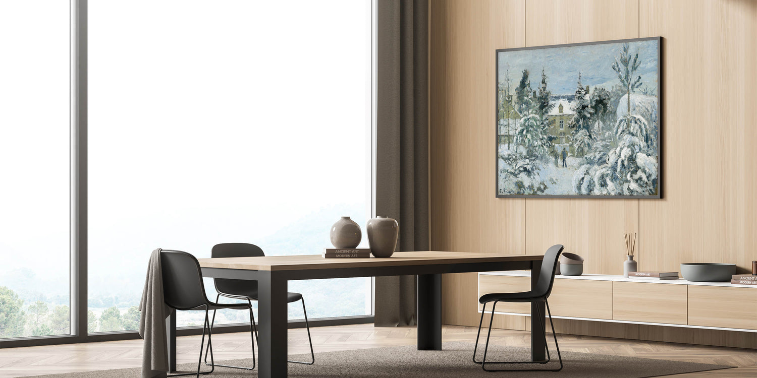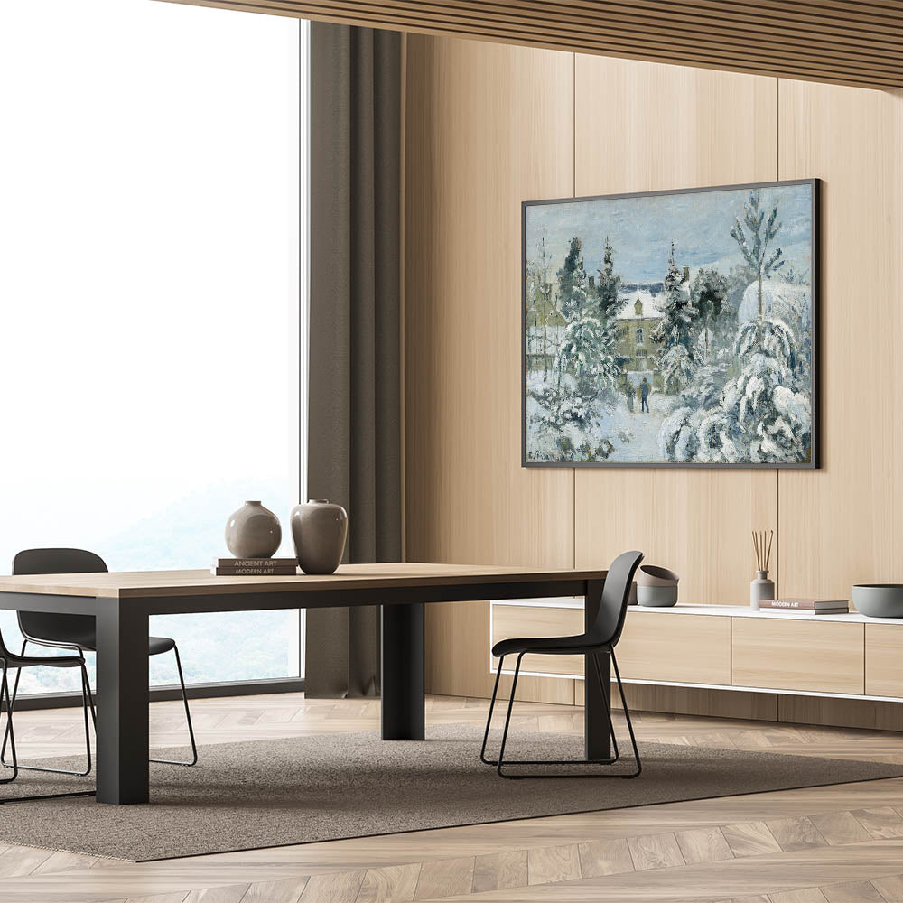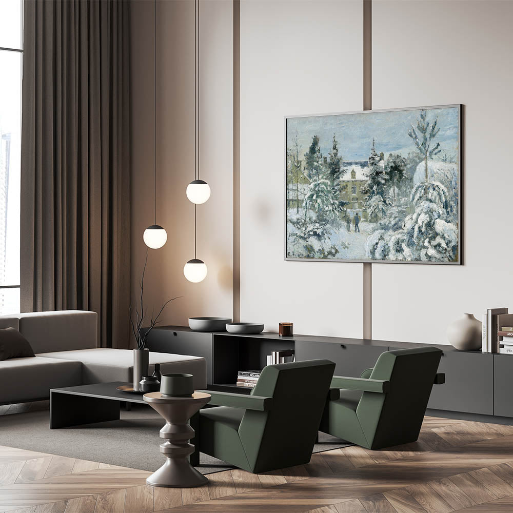 Bring the quiet elegance of Pissarro’s wall art into your home with this serene winter landscape. This peaceful composition is perfect for adding a touch of nature’s calm to your interior decor.