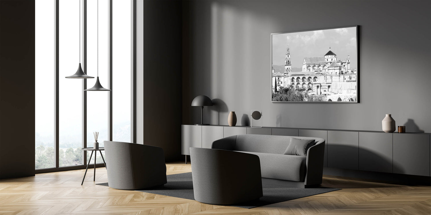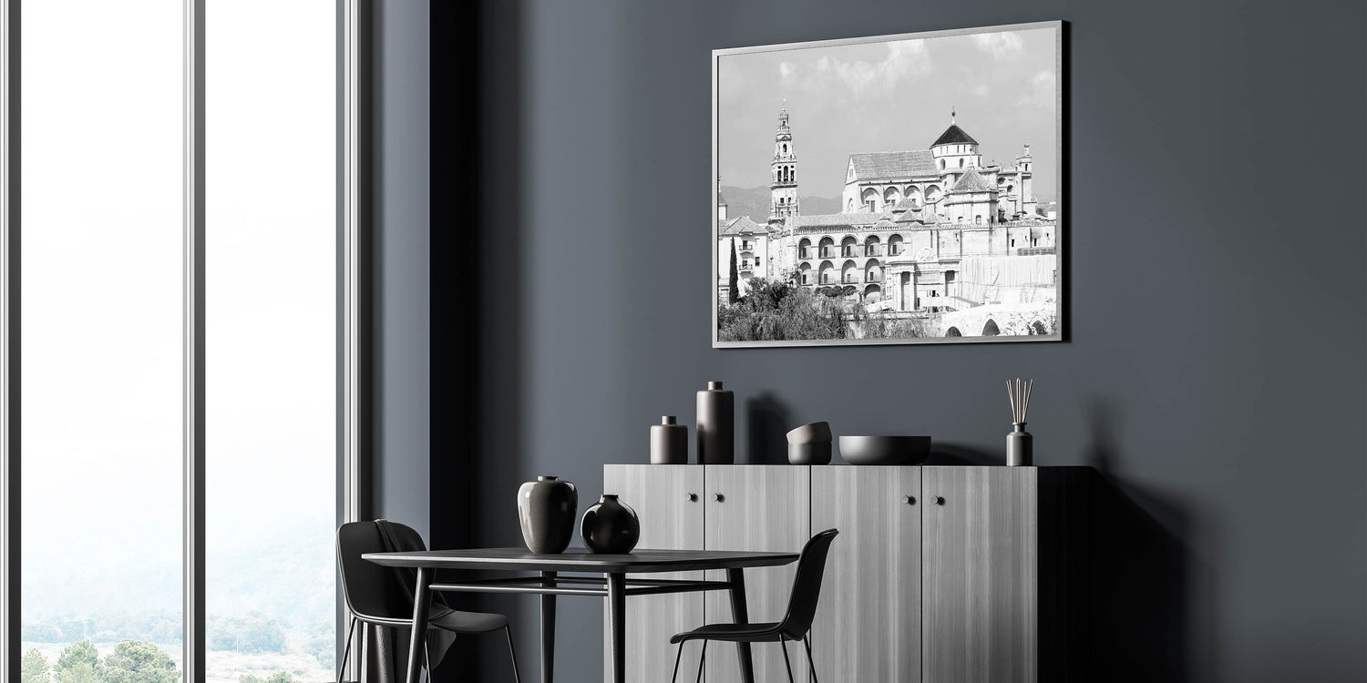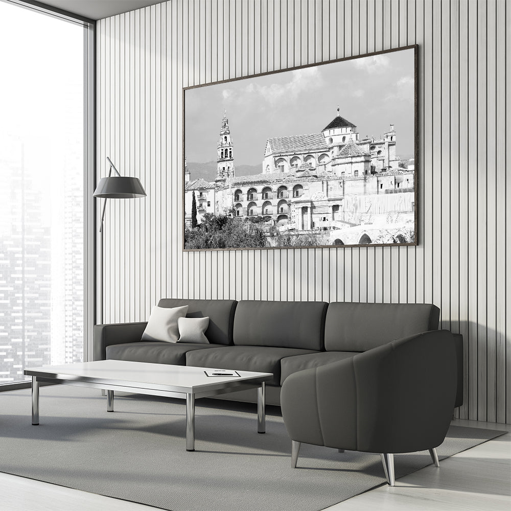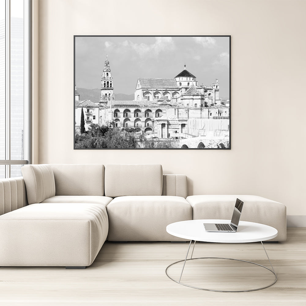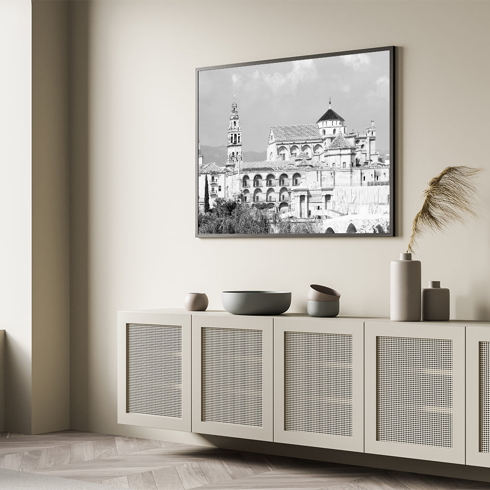 Elevate your space with this classic black and white mosque architecture wall art. The artwork beautifully captures the grandeur of Islamic architectural design, showcasing intricate details in a timeless monochrome palette. Perfect for those who appreciate mosque photography and Islamic decor, this piece adds sophistication and a sense of history to any room. Available in various formats, including stretched canvas, framed canvas, acrylic glass, and framed prints, this artwork offers versatile options for enhancing your home or office decor.