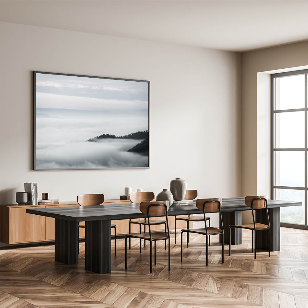 This Misty Landscape Art embodies the quiet majesty of the mountains, offering a peaceful escape into nature's embrace. Whether you're looking to create a focal point or complement your existing decor, this artwork will enhance any environment with its soothing presence.