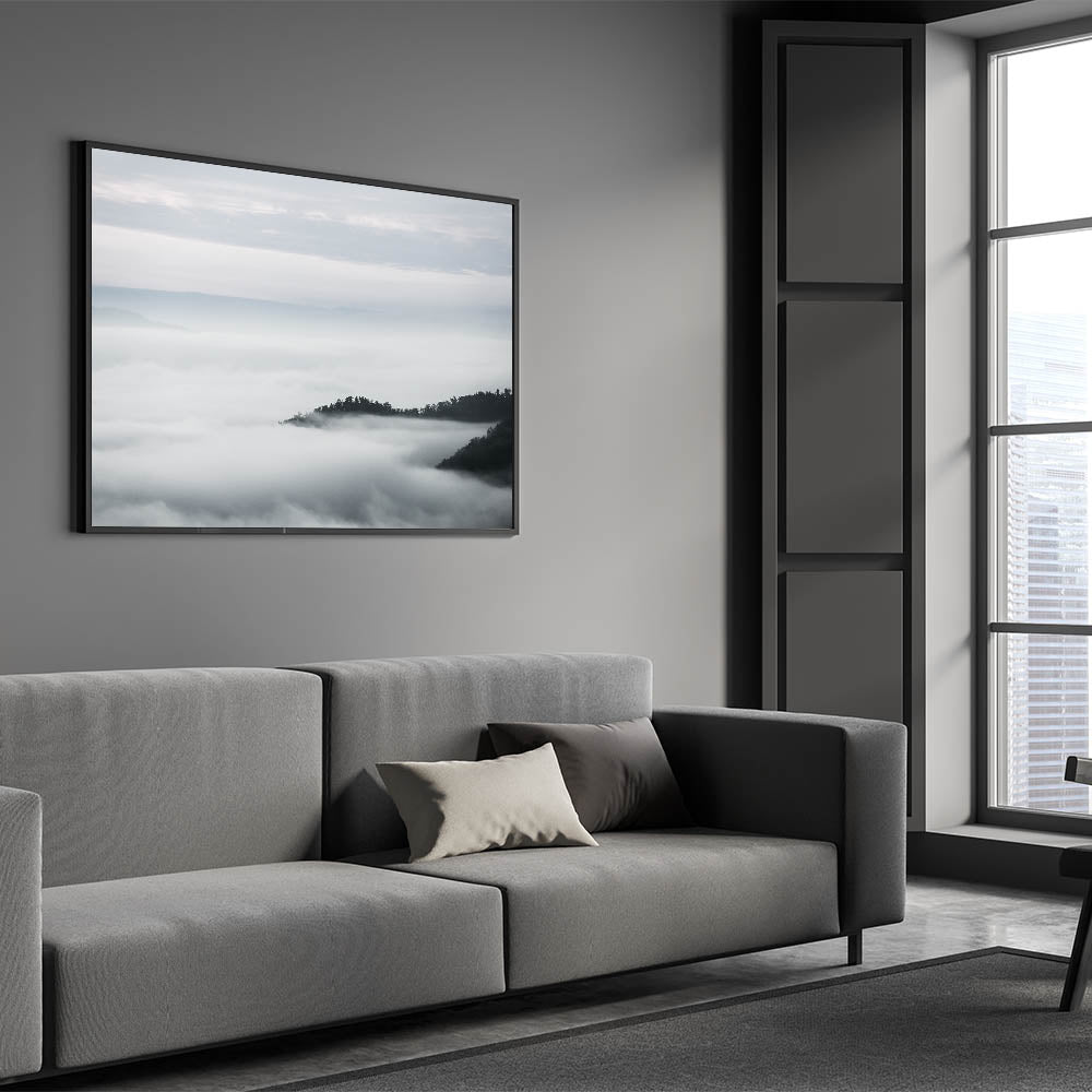 Cloud-Covered Mountains Art - Serene Misty Landscape Wall Decor