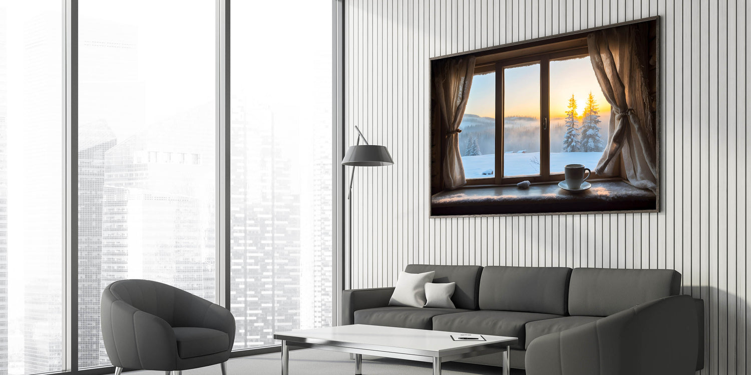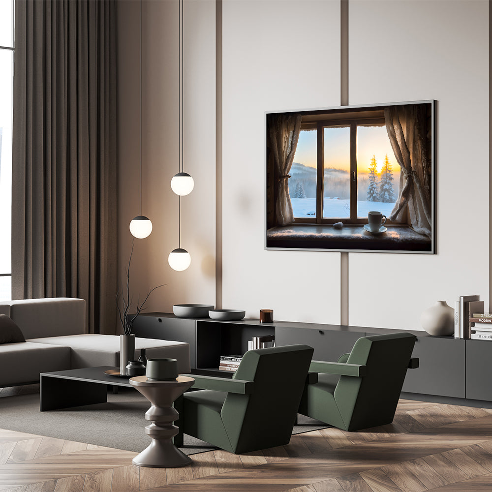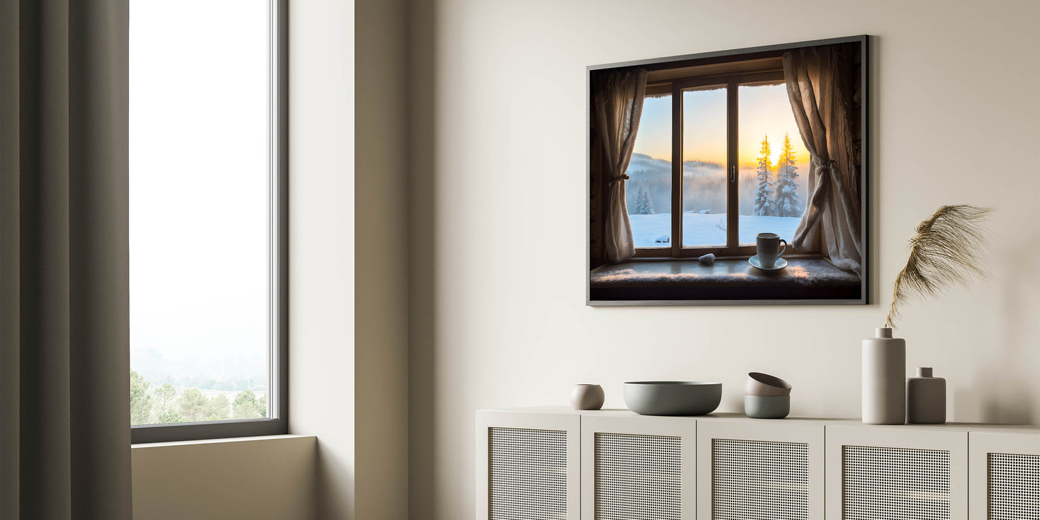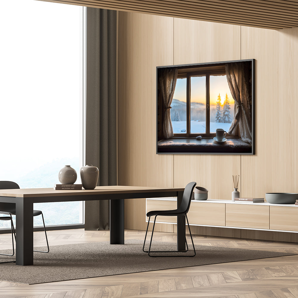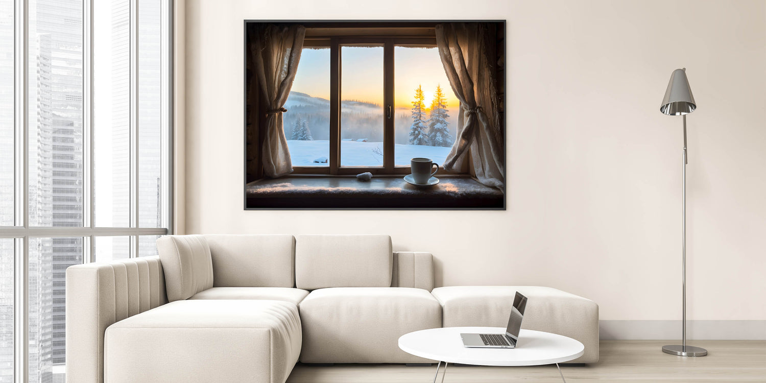 Cozy Winter Sunrise Through Window – Warm & Serene Canvas Wall Art