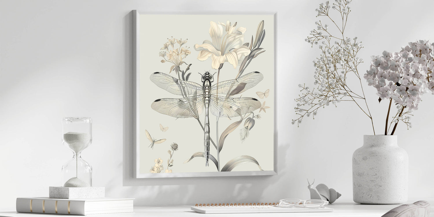 Dragonfly Wall Art - Elegant Floral Decor in Canvas & Framed Prints