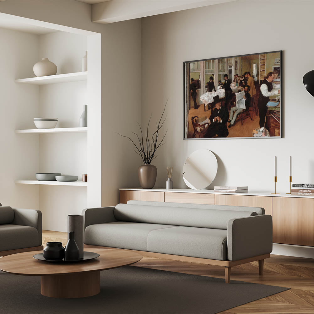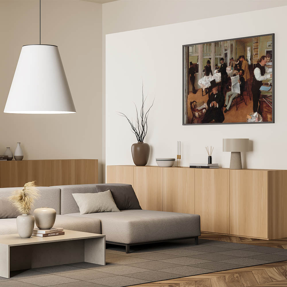 Enhance your home or office decor with this high-quality Degas print that brings the everyday life of a cotton office into focus. Ideal for lovers of French Impressionist wall art who appreciate the portrayal of work life in a historical context.