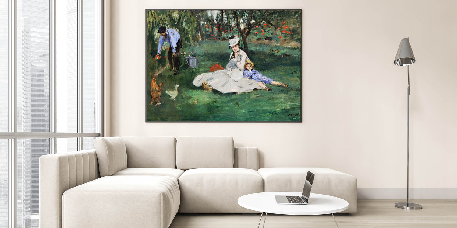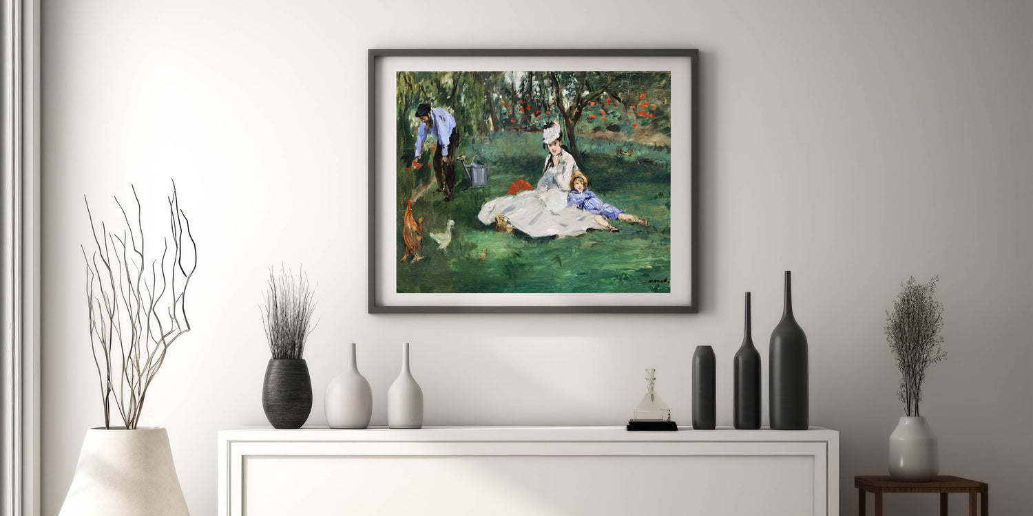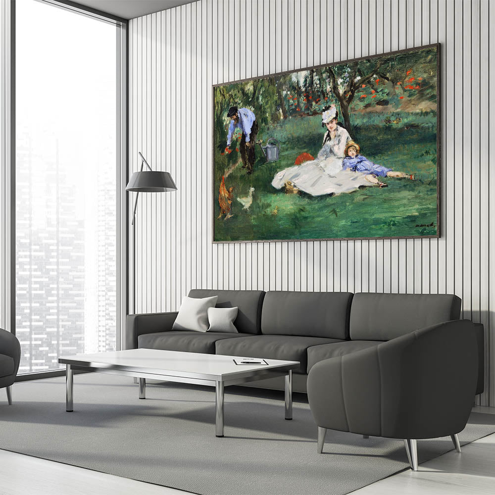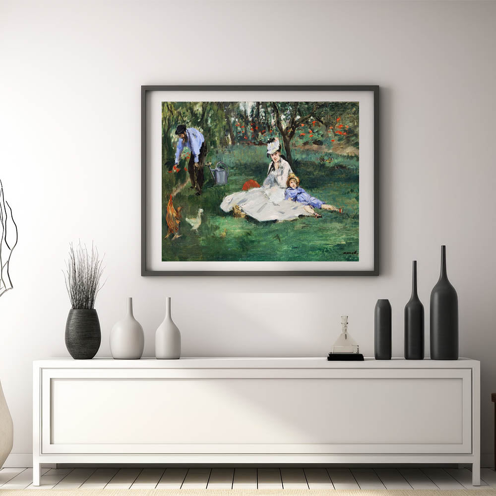 Step into the serene beauty of the French countryside with this enchanting reproduction of Édouard Manet’s garden scene. This captivating piece from the Manet Wall Art Collection showcases the relaxed, joyful atmosphere of a family enjoying nature’s peaceful embrace. As a fine example of Manet’s work during the French Impressionist Movement, this painting exudes charm and sophistication, making it a timeless addition to any art lover’s collection.