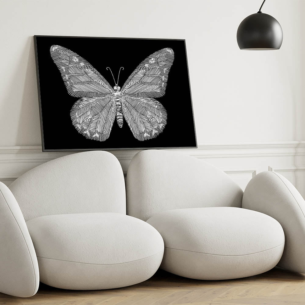 Enhance your space with this stunning Butterfly Wall Art, a unique piece that captures the elegance and intricacy of nature. This monochrome artwork features a meticulously detailed butterfly design, making it a perfect addition to any modern or minimalist décor. Whether you’re decorating your living room, bedroom, or office, this Butterfly Canvas Print offers a timeless aesthetic that complements various styles.
