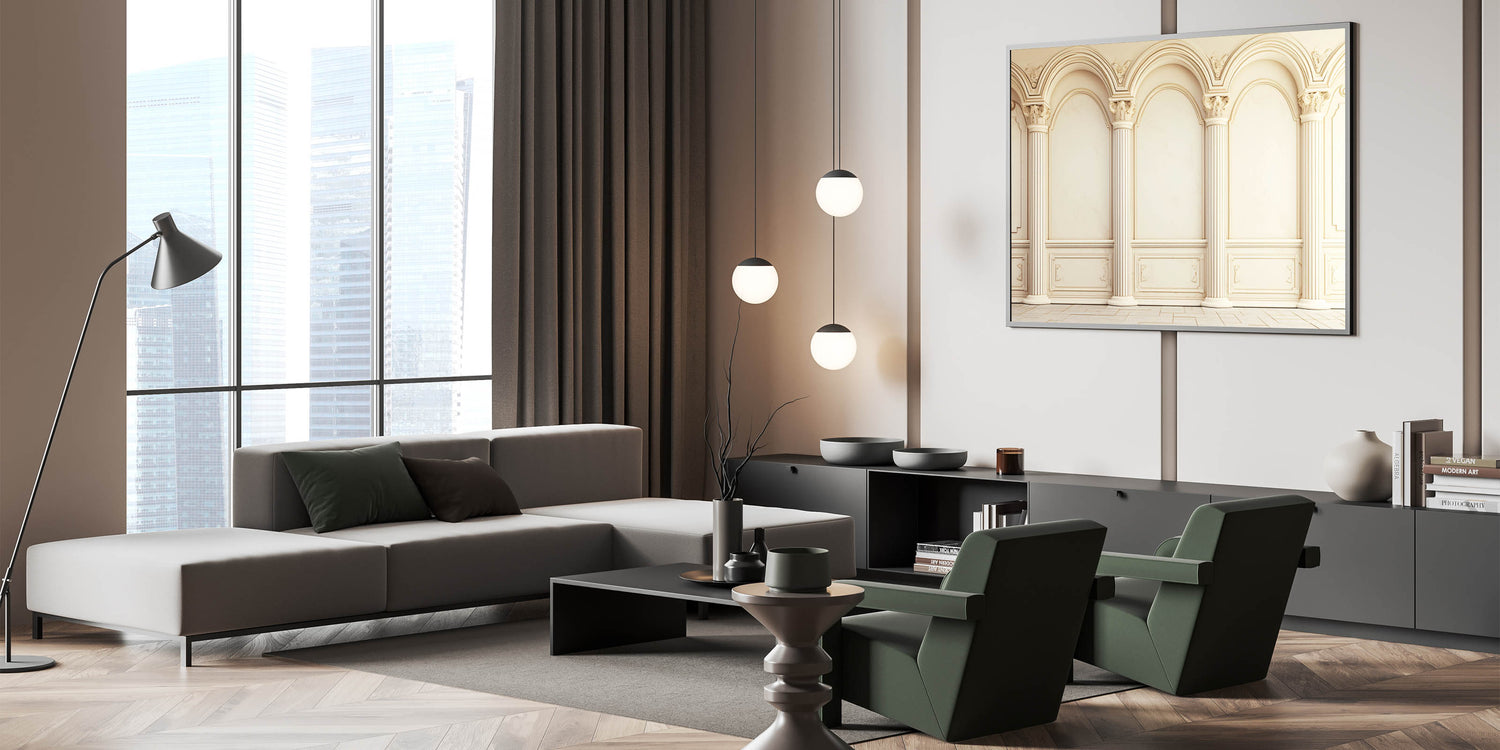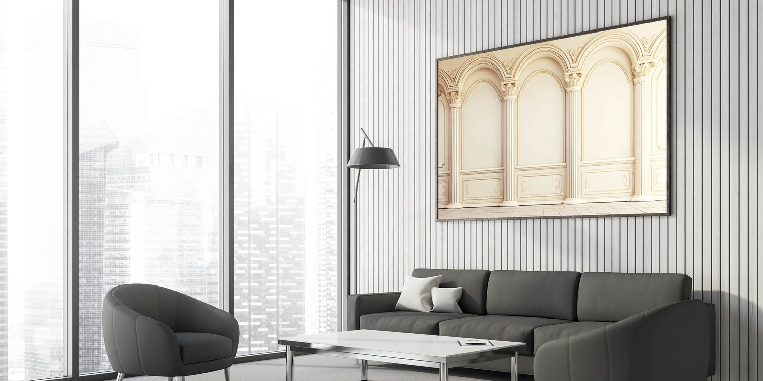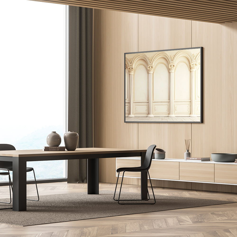 - Design: The artwork highlights a serene, symmetrical arrangement of columns and arches, perfect for adding elegance to living rooms, hallways, or offices.